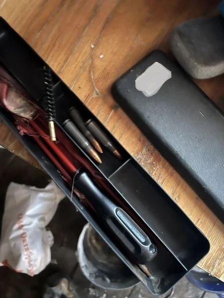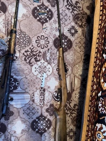 При обыске у него нашли самодельное нарезное оружие 1948 года выпуска, 12 патронов 1908 года, карабин 5,6 мм и приспособление для чистки.
