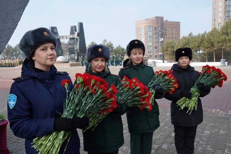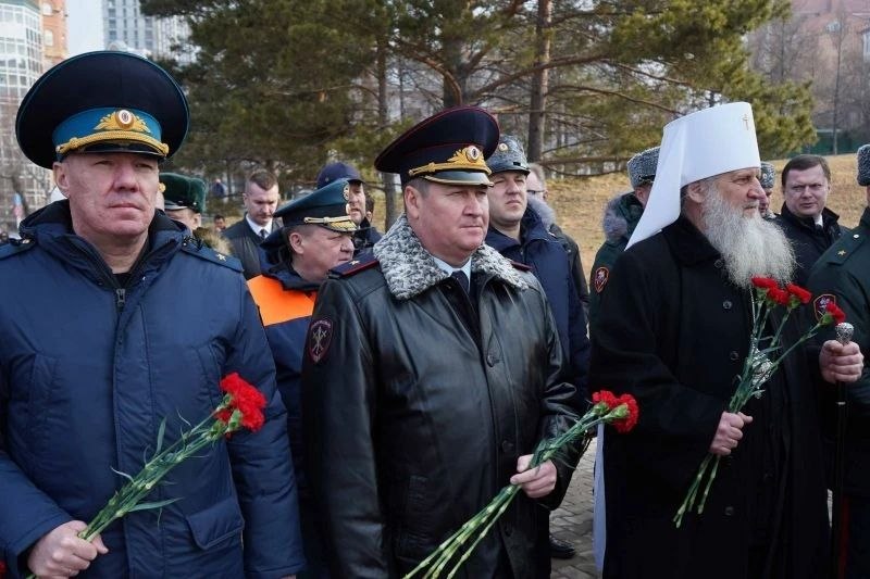 Сегодня начальник УМВД России по Хабаровскому краю генерал-майор полиции Андрей Шабашов в числе участников мероприятия возложил алые гвоздики к Вечному огню на площади Славы в честь погибших в локальных и военных конфликтах.