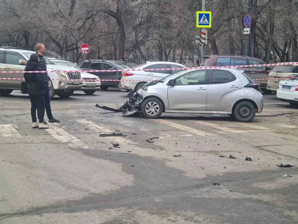 ДТП произошло на перекрестке Запарина – Амурский бульвар. Водитель на «Тойота Ярис» проехал на красный и врезался в Гелендваген. Гелендваген отбросило на ограждение, водитель скончался до прибытия бригады скорой помощи.На месте работают...