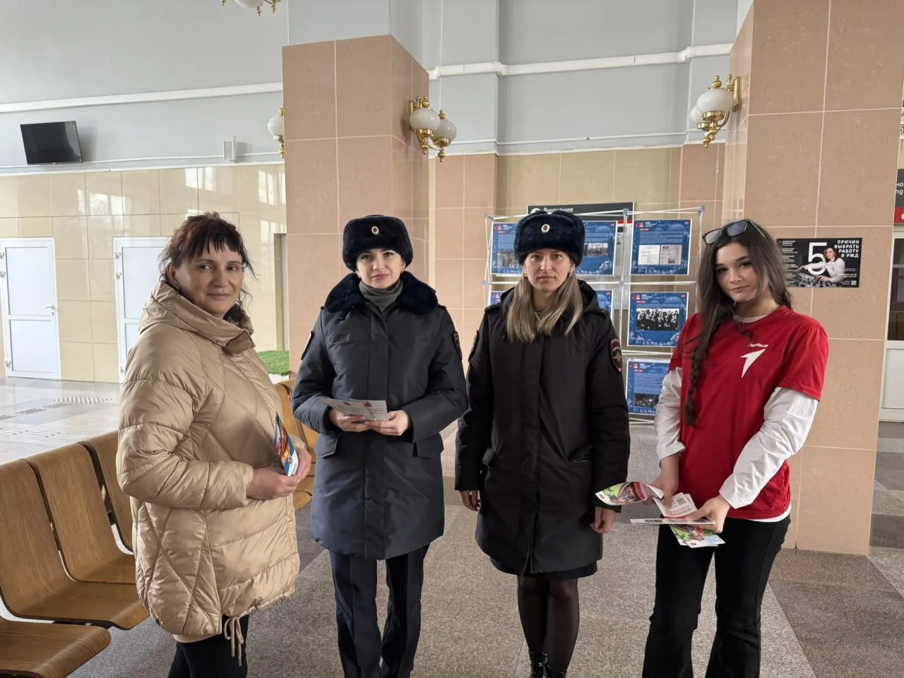 В Хабаровском крае транспортные полицейские и участники Движения Первых провели акцию «Безопасный транспорт» на железнодорожном вокзале Ванино
