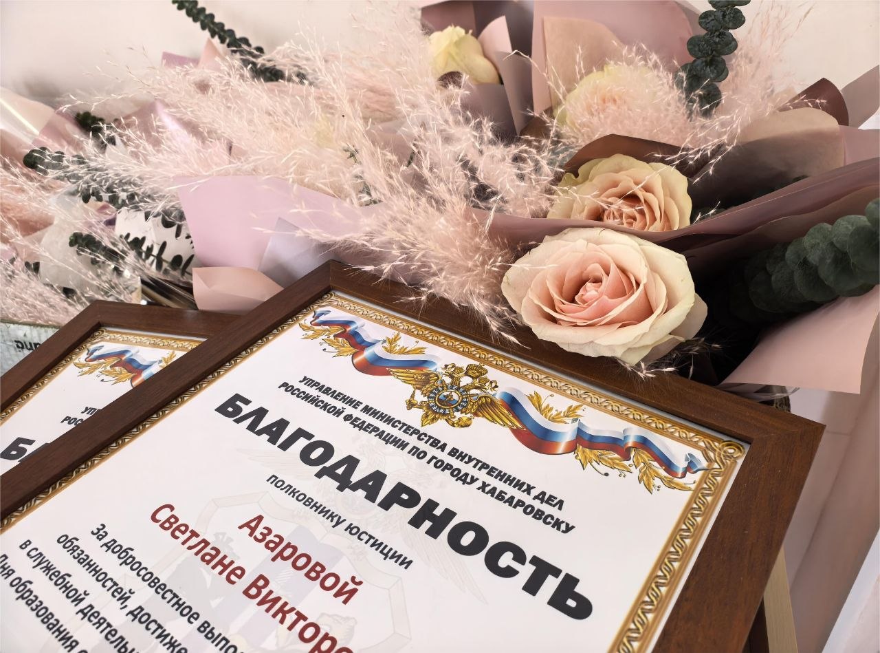 За достигнутые профессиональные результаты руководитель Хабаровской полиции вручил сотрудникам следственных подразделений благодарственные письма.
