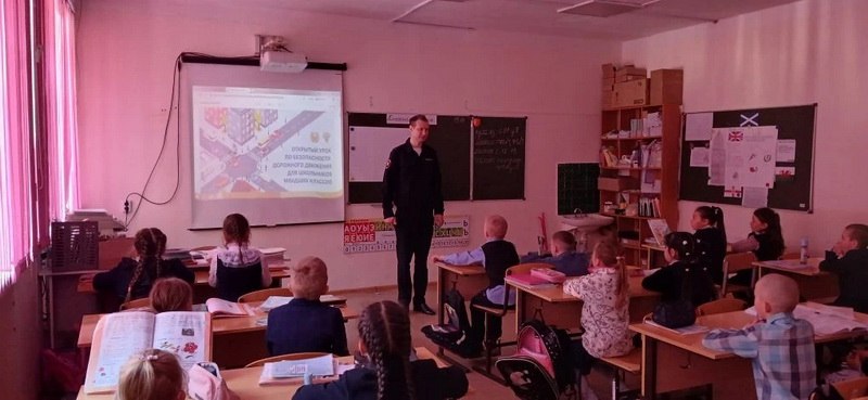 Госавтоинспектор рассказал ребятам о правилах безопасного поведения пешеходов, велосипедистов и самокатчиков при участии в дорожном движении, напомнил о правилах применения детских удерживающих устройств и ремней безопасности при поездке в автомобиле. Полицейский продемонстрировал презентации и вместе с учащимися обсудил, как не попасть в "дорожные ловушки". Особое внимание уделил применению световозвращающих элементов, объяснив какую роль они играют в безопасности пешеходов.