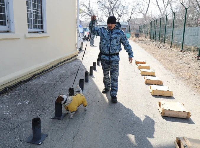 На базе Управления на транспорте МВД России по Дальневосточному федеральному округу были проведены первые учебно-методические сборы, главными задачами которых стали дополнительная подготовка и совершенствование навыков в области поиска и обнаружения взрывчатых веществ, взрывных устройств, оружия и боеприпасов, отработка новых приемов дрессировки и применения служебных собак в оперативно-служебной деятельности. Для кинологов и их четвероногих напарников это были не просто тренировки, а настоящий экзамен на профессионализм.