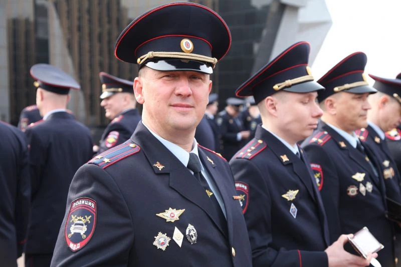 Врио начальника УМВД России по Хабаровскому краю полковник полиции Александр Кубатин проверил внешний вид, жетоны, удостоверения и соблюдение правил ношения летней формы.
