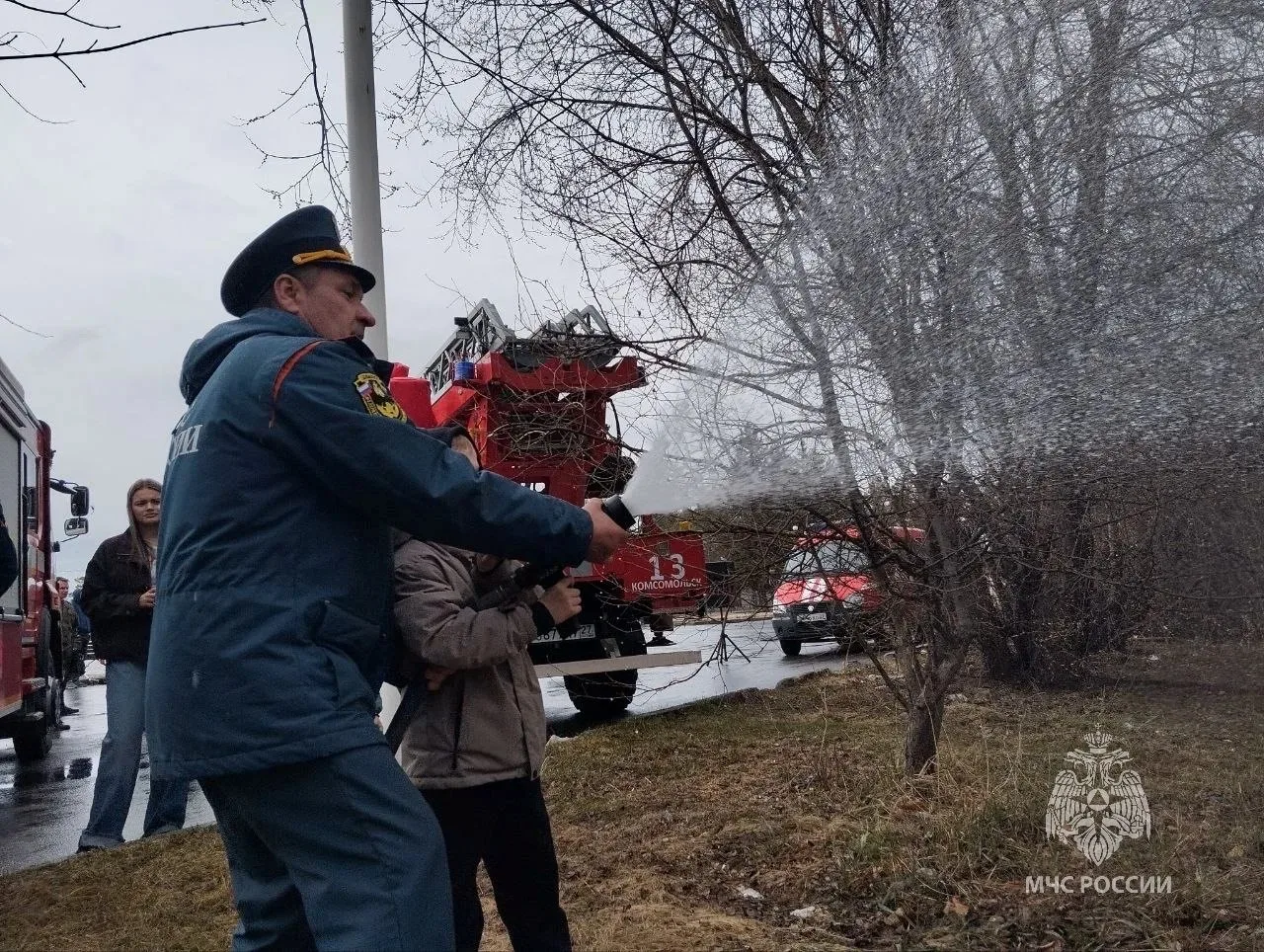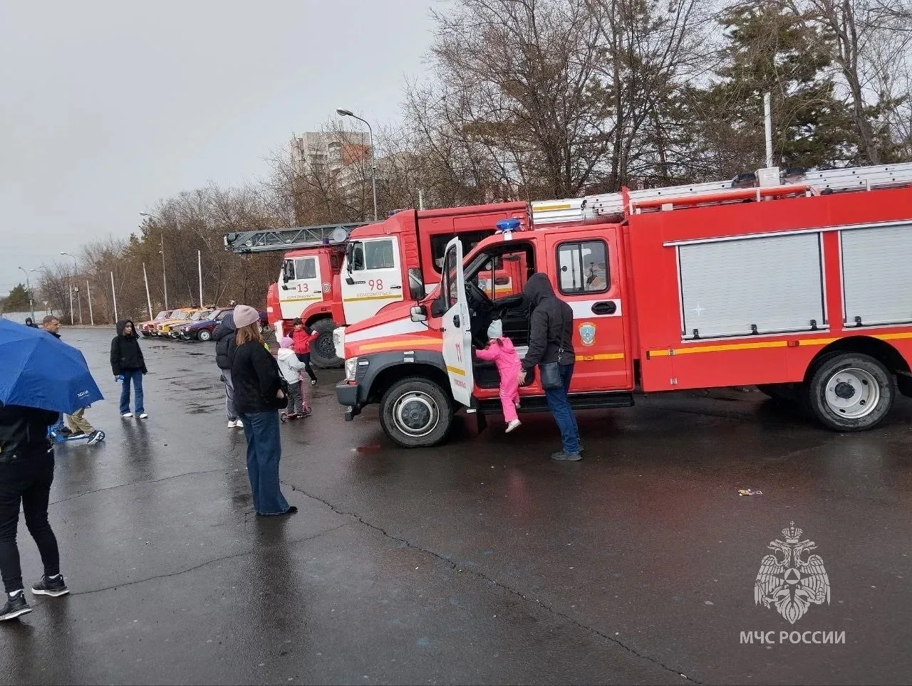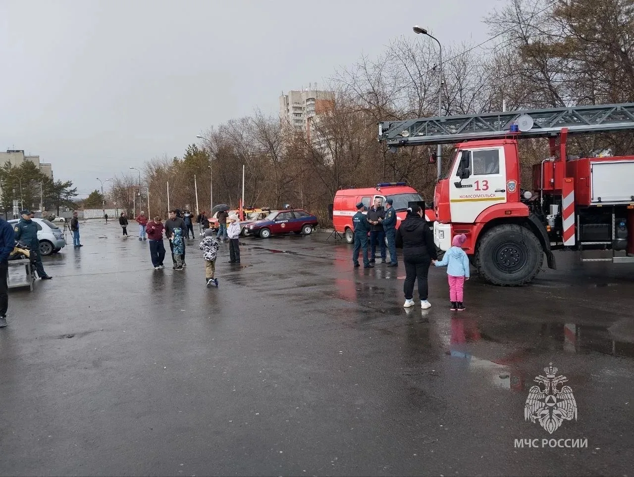 Накануне Дня пожарной охраны в Комсомольске-на-Амуре сотрудники МЧС России организовали выставку пожарной техники