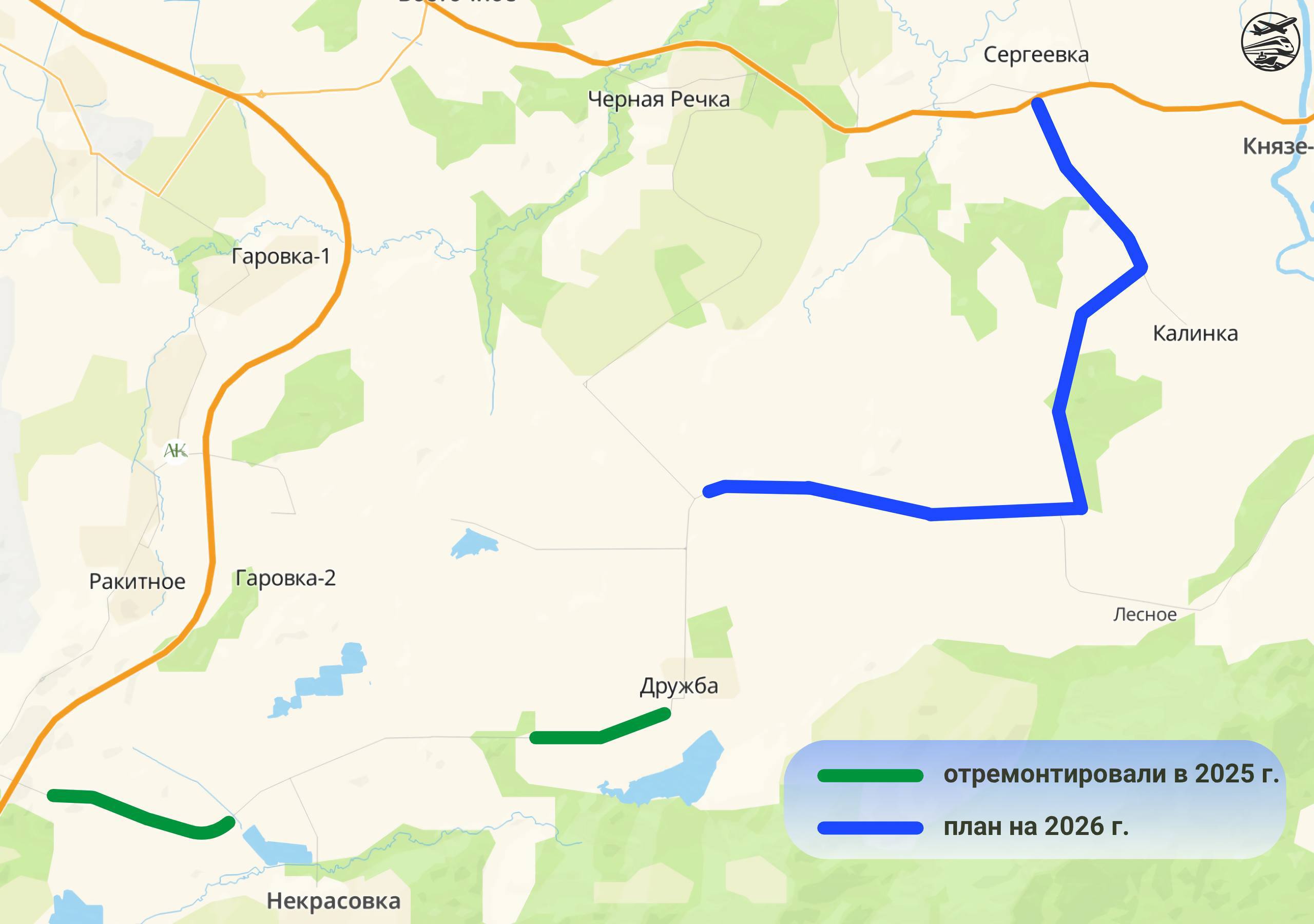 Это продолжение большой работы. В прошлом году завершили ремонт участка «Подъезд к селу Дружба» от 5-го километра трассы «Хабаровск – Ильинка – Ракитное – Гаровка1 – пос. им. Горького» протяженностью 9 км.