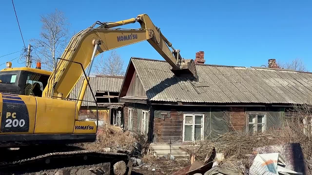 Сегодня техника зашла на улицу ДорУрс ДВЖД, 55. Все бывшие жильцы аварийного дома уже переехали в новые благоустроенные квартиры.