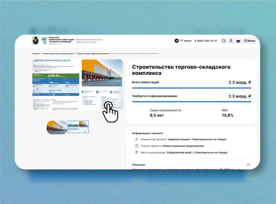 По поручению губернатора Дмитрия Демешина на инвестпортале края опубликованы актуальные предложения для бизнеса. Каждая инициатива содержит расчет экономических показателей, перечень мер господдержки, подобранный земельный участок.