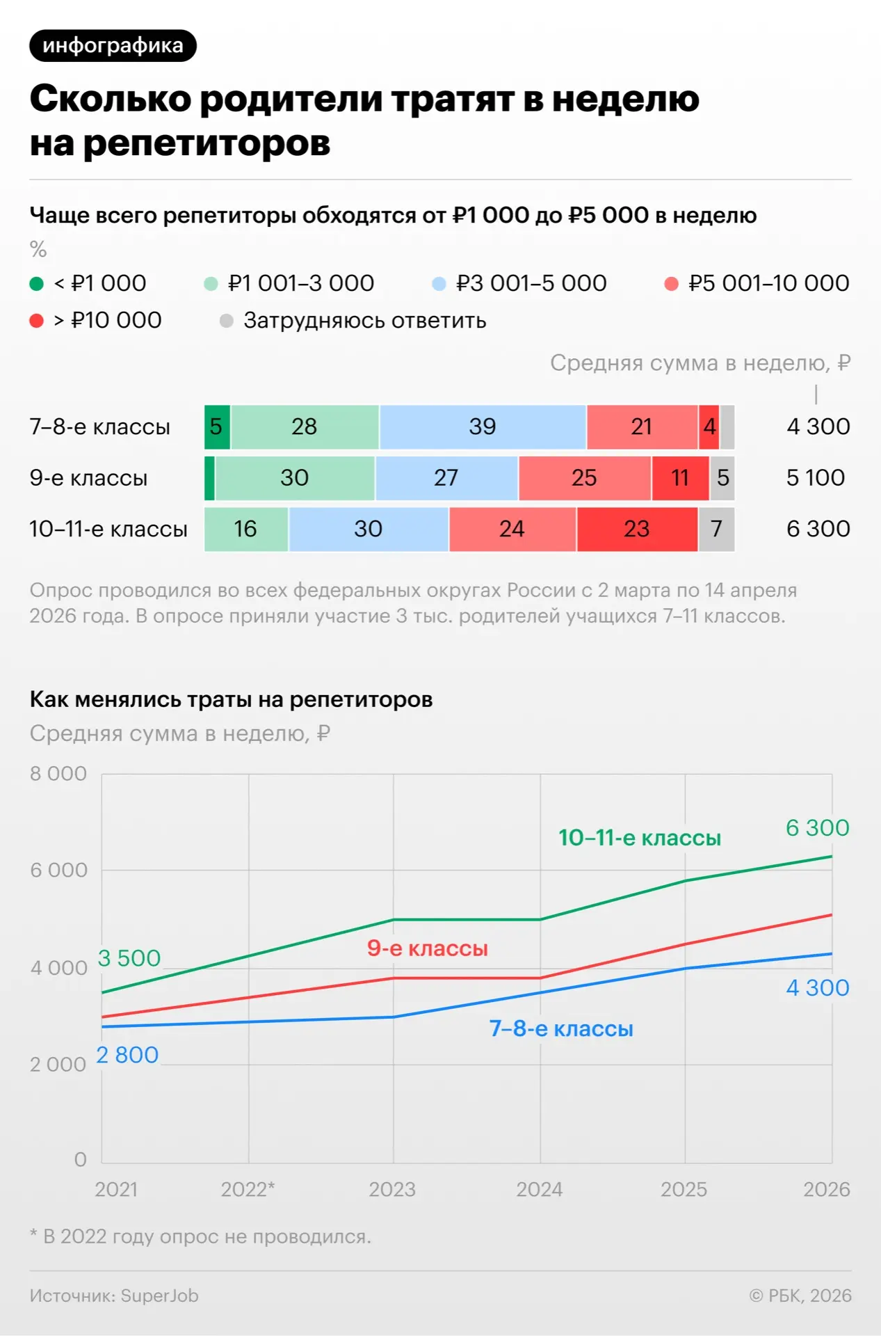 Родители стали чаще нанимать репетиторов для школьников и тратить на них больше, чем в предыдущие годы. В среднем расходы на дополнительные занятия сейчас составляют 5–6 тыс. руб. в неделю. Это следует из результатов опроса (данные есть у РБК) сервиса SuperJob.