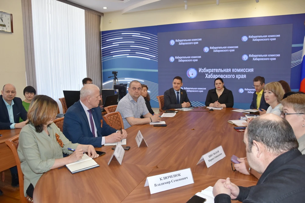 24 апреля 2026 года в избирательной комиссии Хабаровского края состоялось рабочее совещание с территориальными комиссиями. В режиме видеоконференцсвязи в мероприятии приняли участие председатели и системные администраторы ТИК районов края.
