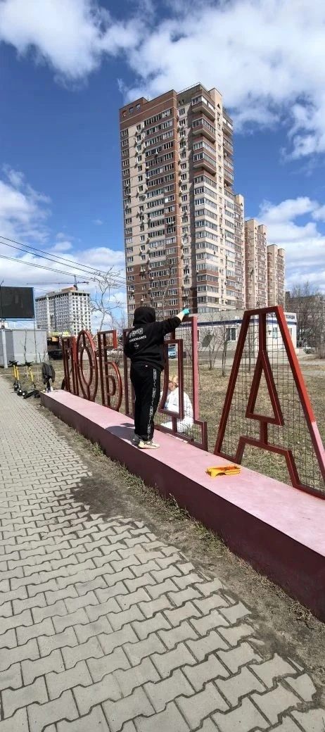 Окрашиванию стеллы "Победа" и цветочных вазонов.