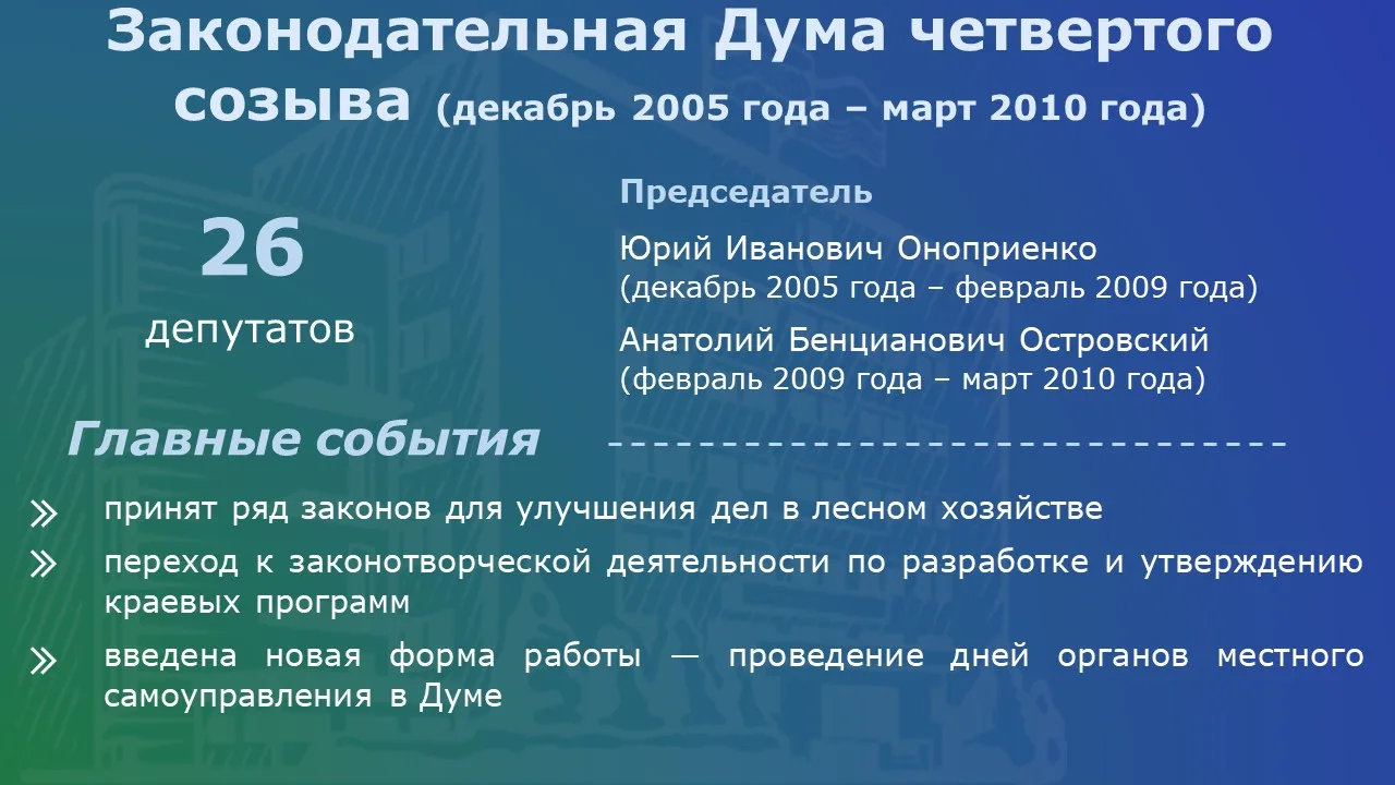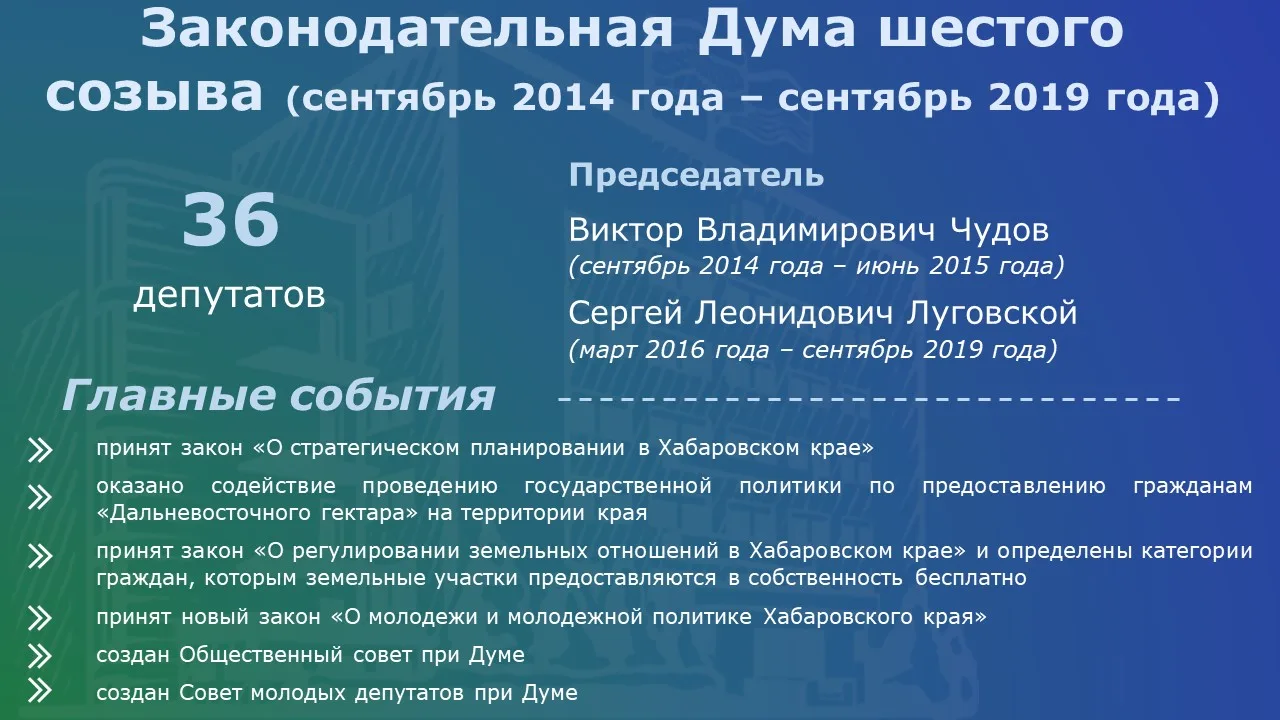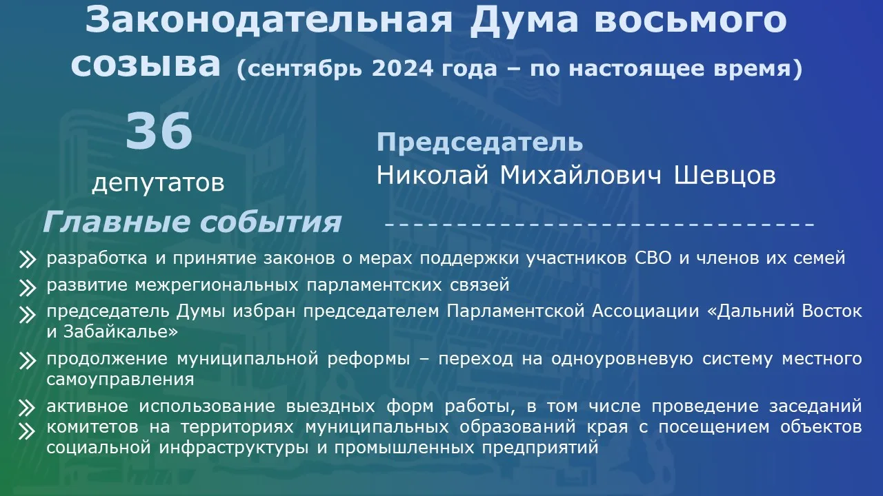 Читайте продолжение истории работы регионального парламента и деятельности текущего, восьмого созыва