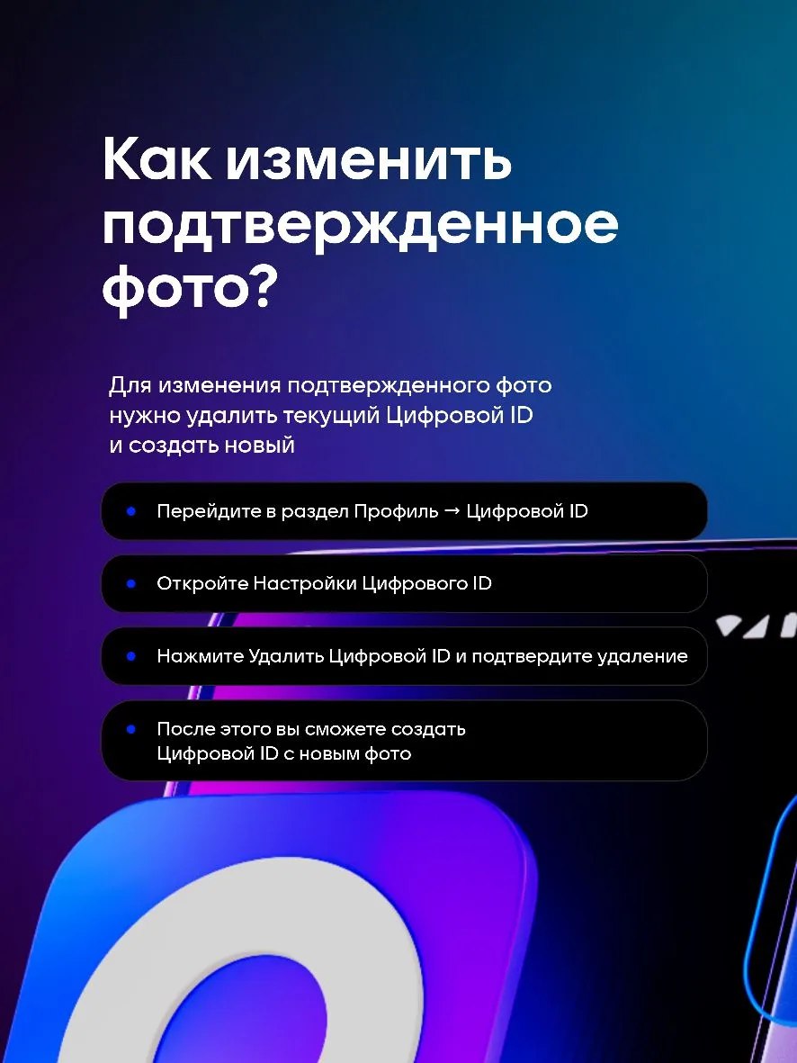 Важно не путать аватар и подтвержденное фото – аватар меняется свободно, а подтверждённое фото – только через перевыпуск цифрового ID.