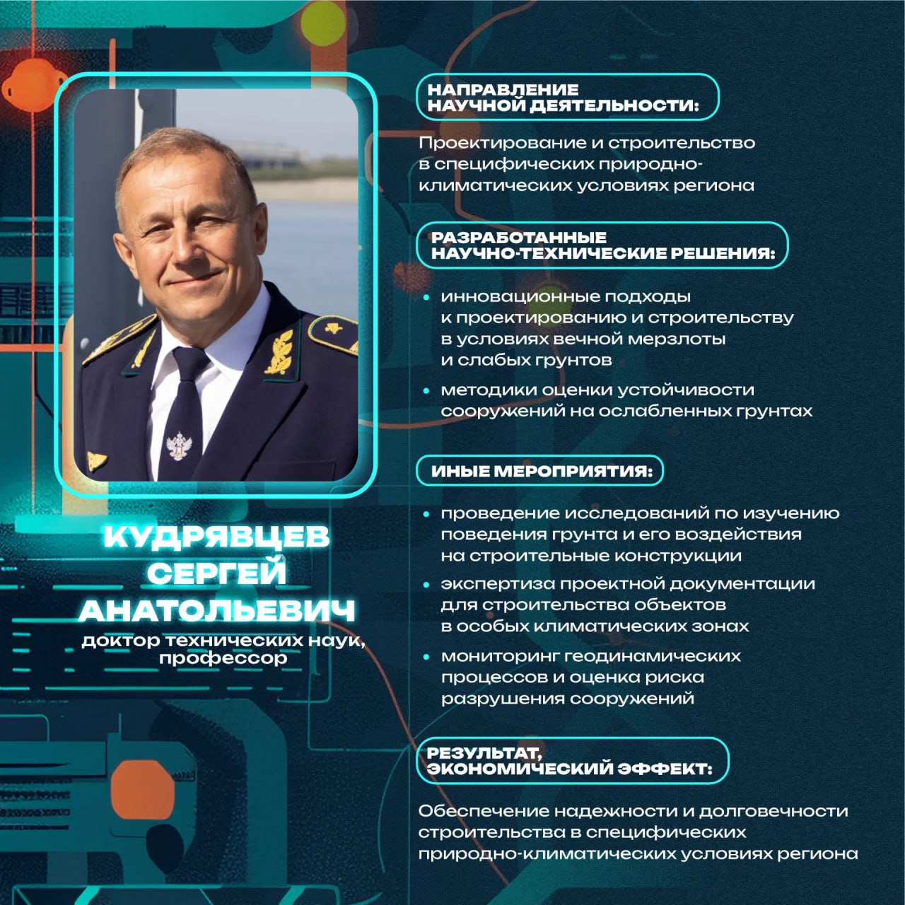 Доктор технических наук Сергей Кудрявцев разрабатывает инновационные решения для строительства на вечной мерзлоте и слабых грунтах.