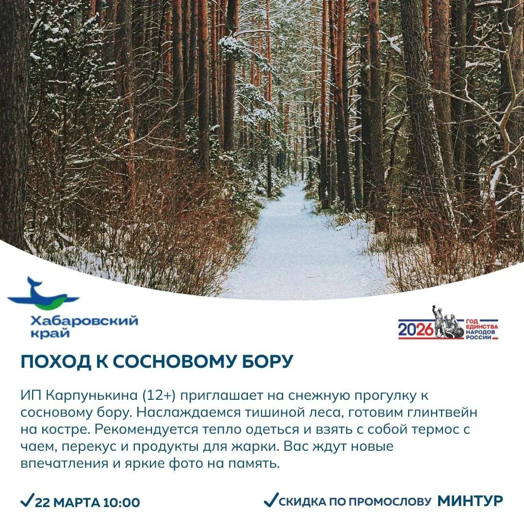 Строим планы на выходные! Можно отправиться в гастротур, прогуляться по таёжным тропам, подняться в горы, увидеть древние писаницы или провести уютный день на свежем воздухе. А для любителей городских событий — атмосферный «лекцЫон» с историями из прошлого Хабаровска.