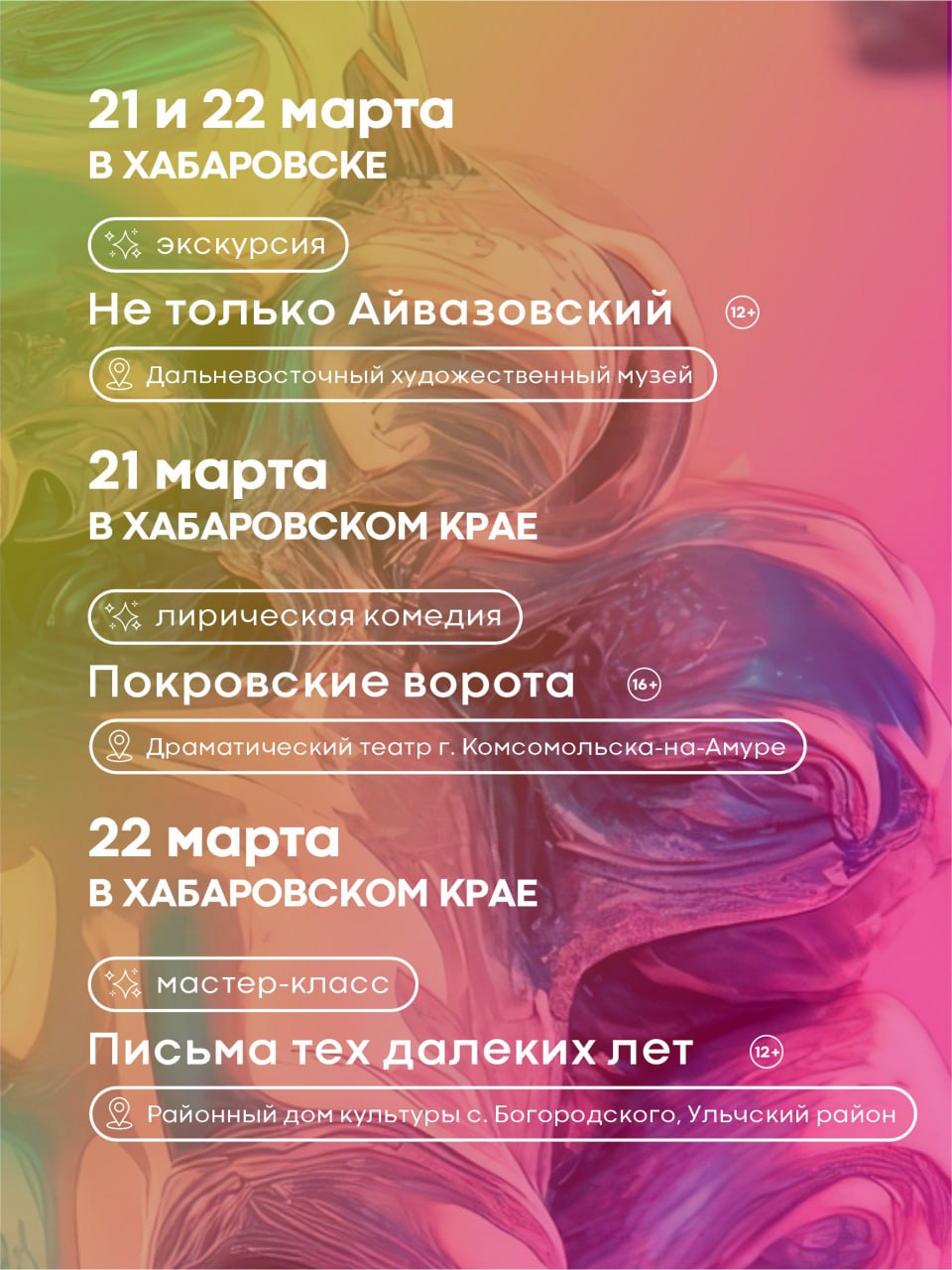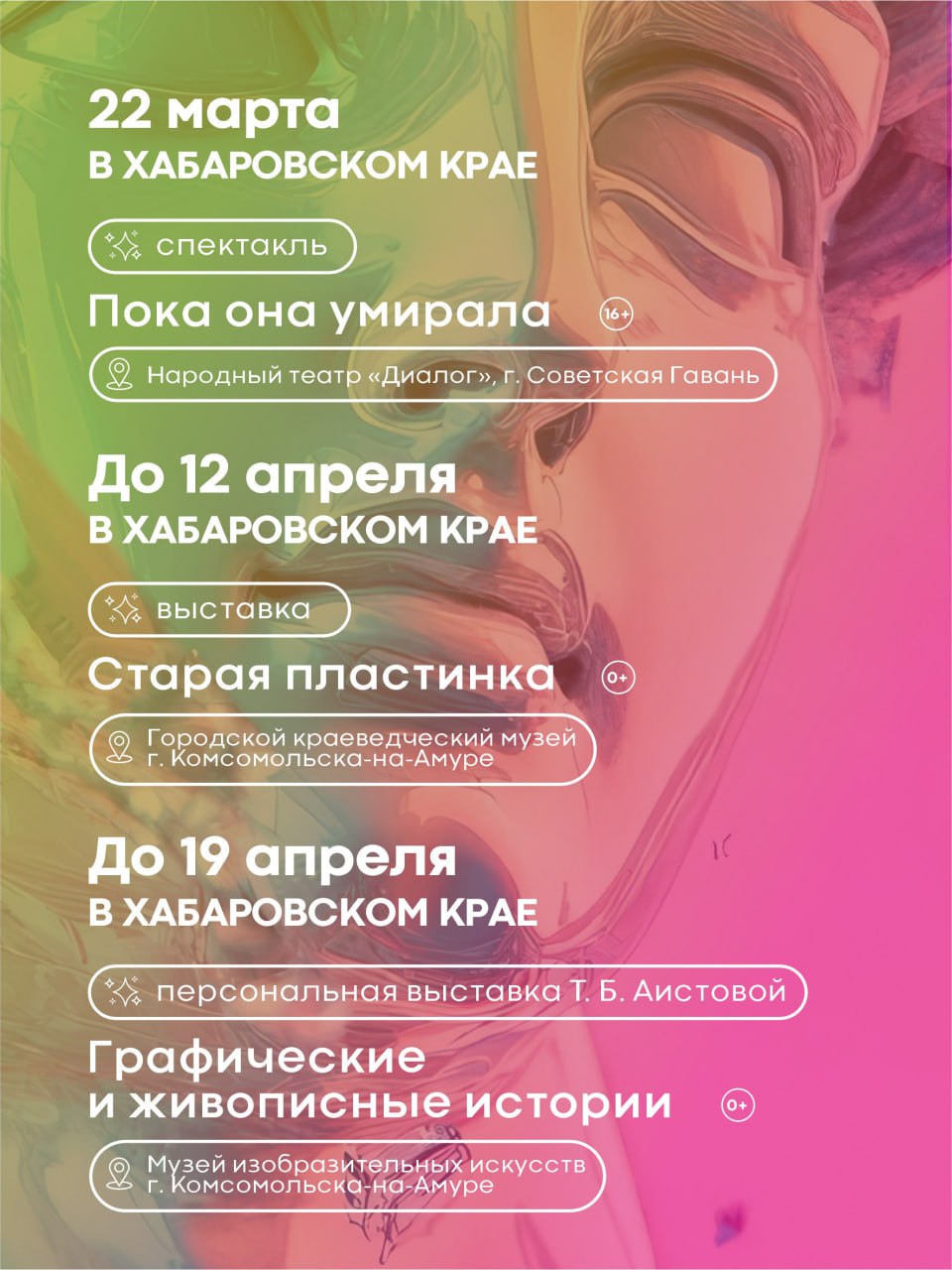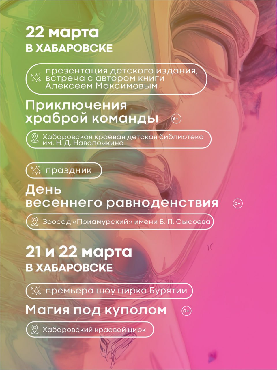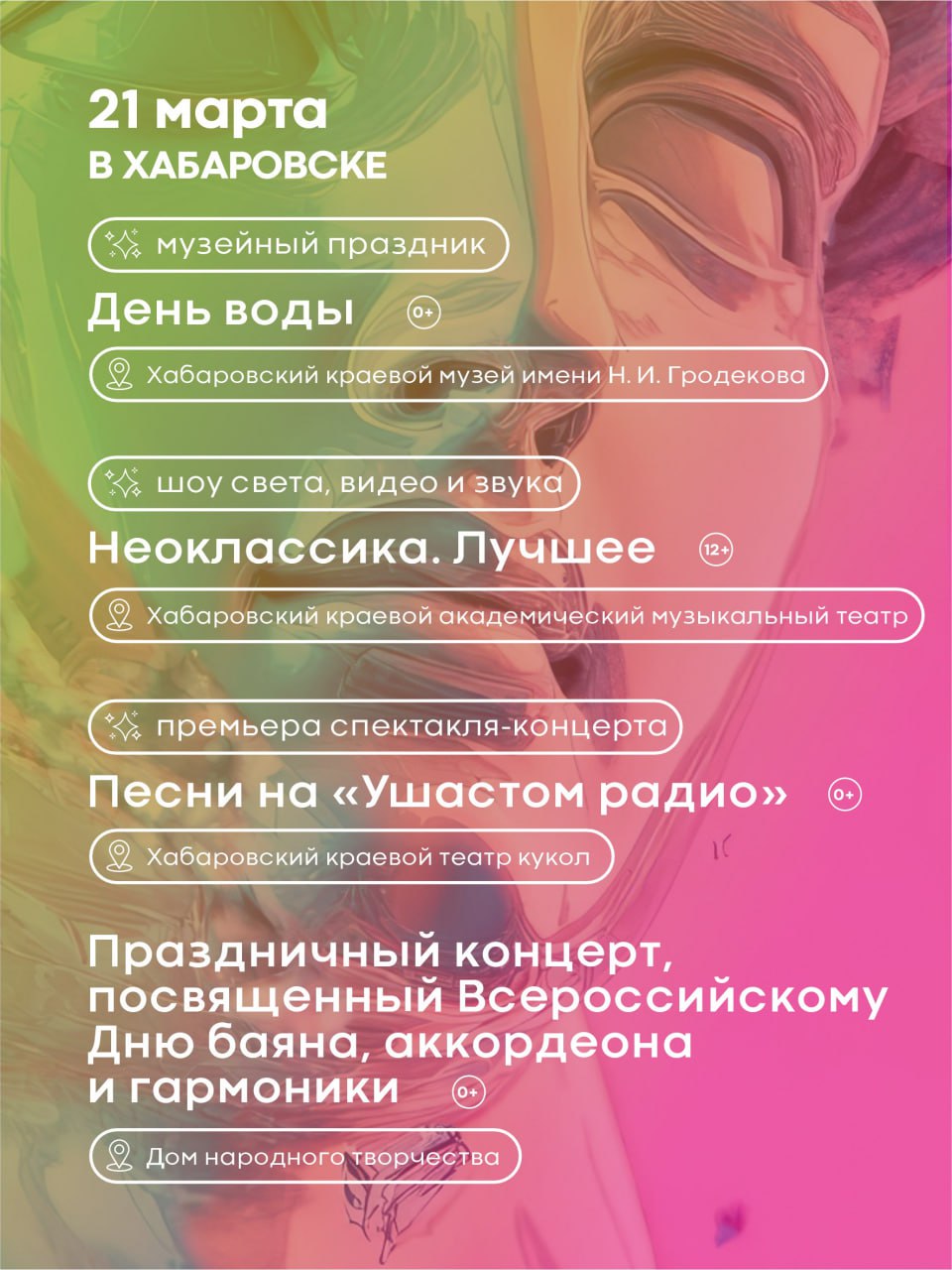 Выбирайте мероприятия вам по душе. Самые интересные события – от премьер в театрах и цирковых шоу до музейных праздников и мастер-классов – в карточках.