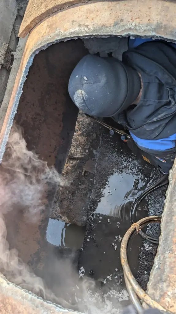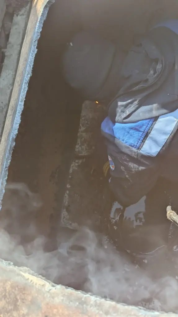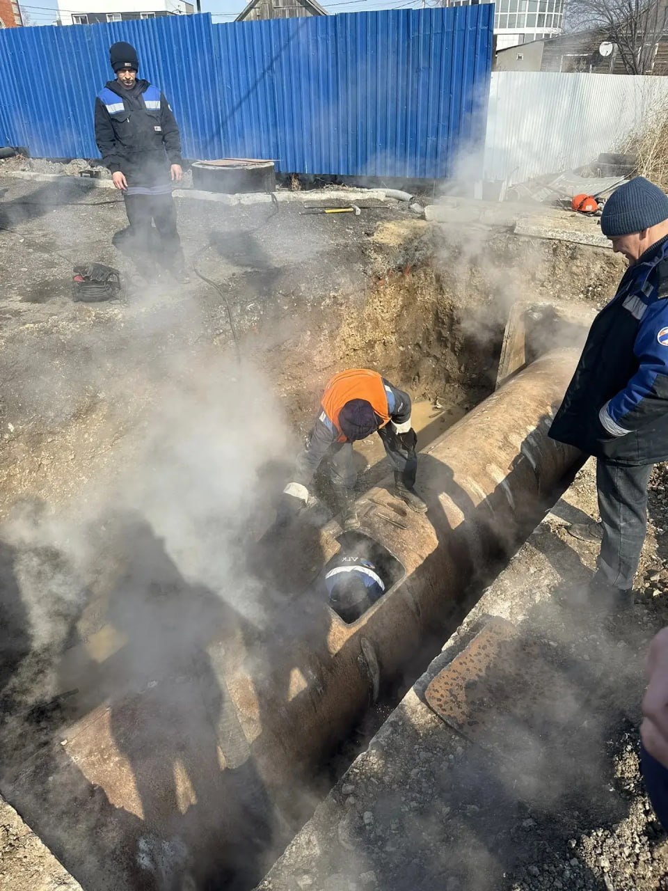 Аварийная бригада Хабаровских тепловых сетей ДГК устраняет порыв на трубопроводе ТМ-32