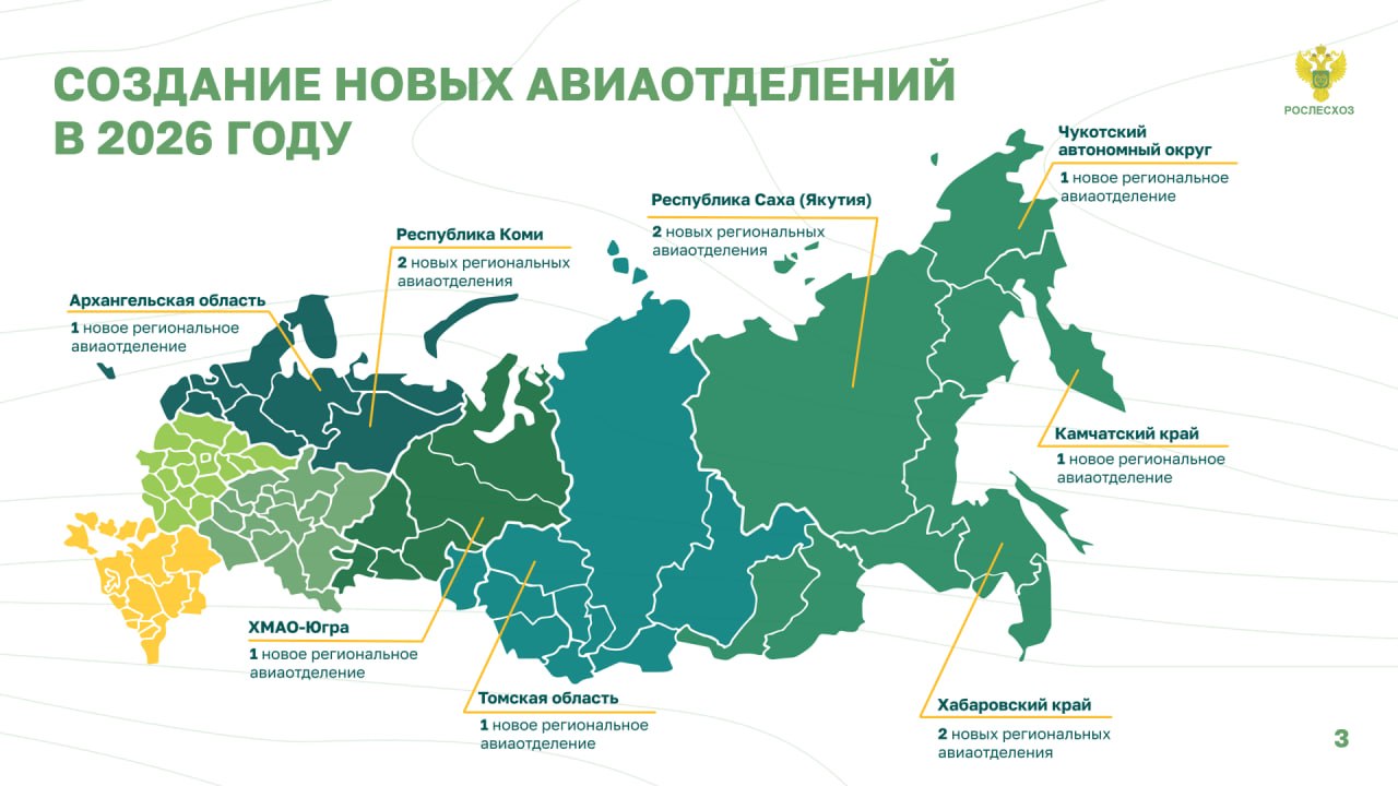 «При этом, дополнительное финансирование в размере 4,6 млрд рублей в этом году получили еще 19 регионов, которые также увеличили зону активного тушения лесных пожаров. В частности, на дополнительные средства в 8 регионах страны появится 11 новых авиаотделений. Они откроются в Ханты-Мансийском и Чукотском автономных округах, республиках Коми и Саха (Якутия), Камчатском и Хабаровском краях, Архангельской и Томской областях. Также за счет этих средств почти на 750 человек увеличится штат специалистов лесопожарных формирований», - рассказал начальник Управления охраны лесов от пожаров Рослесхоза Евгений Писаревский на пресс-конференции в ТАСС по старту лесопожарного сезона.