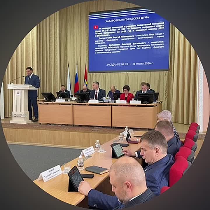 С докладом о внесении изменений в решение Хабаровской городской Думы от 16.12.2025 № 520 «О бюджете городского округа «Город Хабаровск» на 2026 год и плановый период 2027 и 2028 годов» выступает Голик Сергей Леонидович - заместитель Мэра города - директор финансового департамента администрации города Хабаровска.
