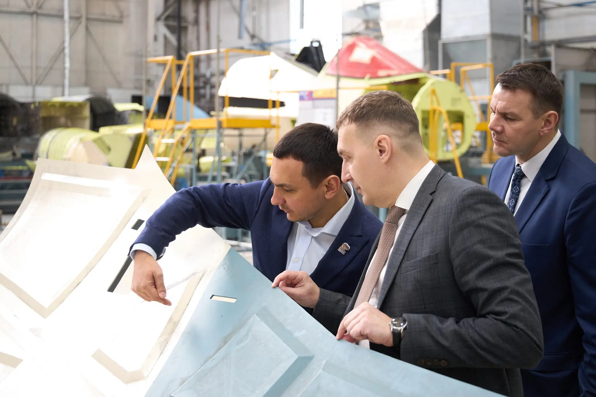 Вместе с директором предприятия Юрием Кондратьевым парламентарий прошел по цехам и лично оценил ключевые этапы сборки самолетов. Для депутата было важно увидеть «внутреннюю кухню» завода: от выстраивания сложнейших технологических процессов до условий работы многотысячного коллектива.