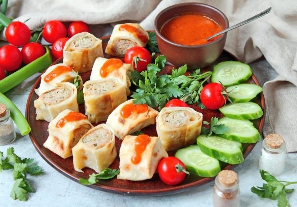 Как только кебабы будут готовы, их необходимо завернуть в лаваш, предварительно выложив натертый сыр. Затем снова запечь до золотистой корочки. Украсить готовое блюдо зеленью и свежими овощами, полить соусом и подать к столу — и насладиться настоящим вкусом Турции у себя дома!