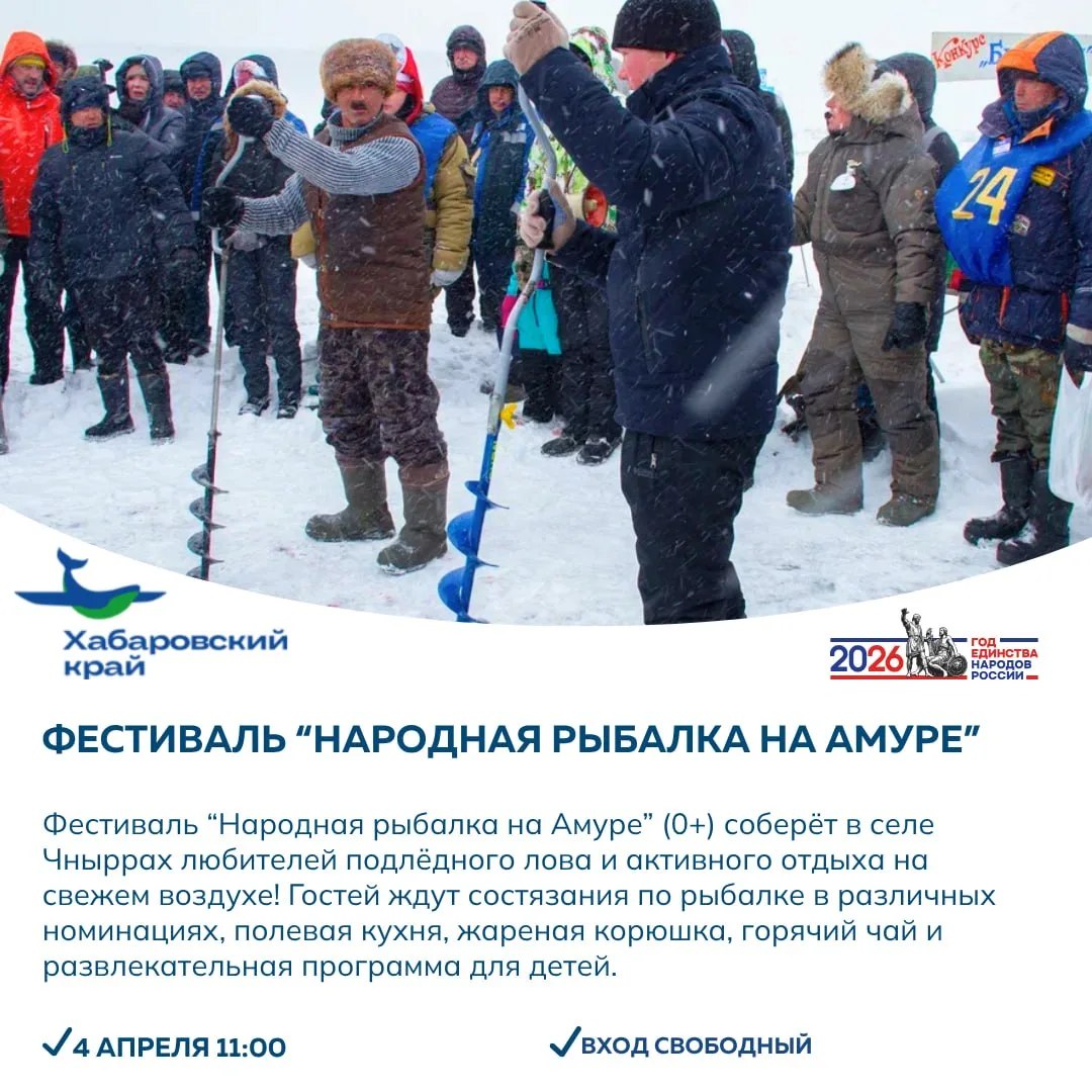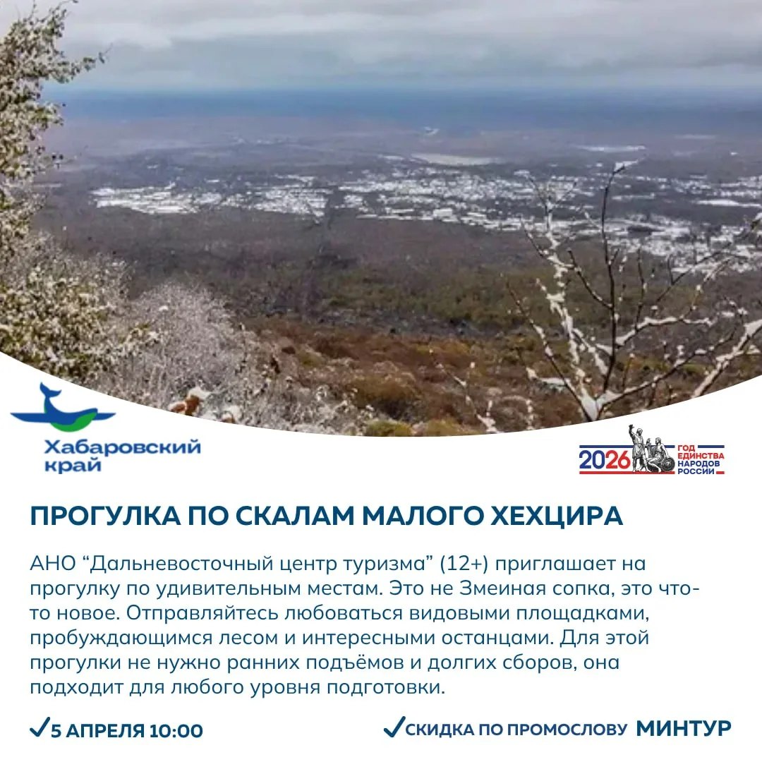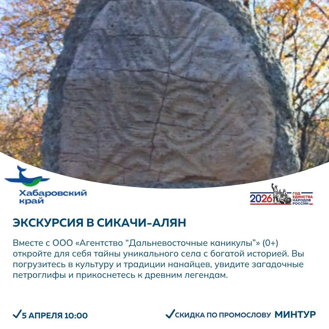Познаём тайны нанайского села, проводим активный отдых на горе Таунга, открываем для себя новые места Хехцира, пробуем корюшку на Фестивале «Народная рыбалка на Амуре», отправляемся в антикварную галерею или в конный клуб!