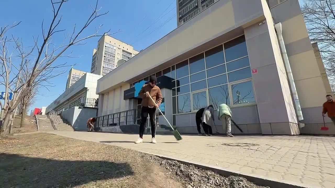 Сотрудники телеканала «Хабаровск» присоединились к весенней уборке города.