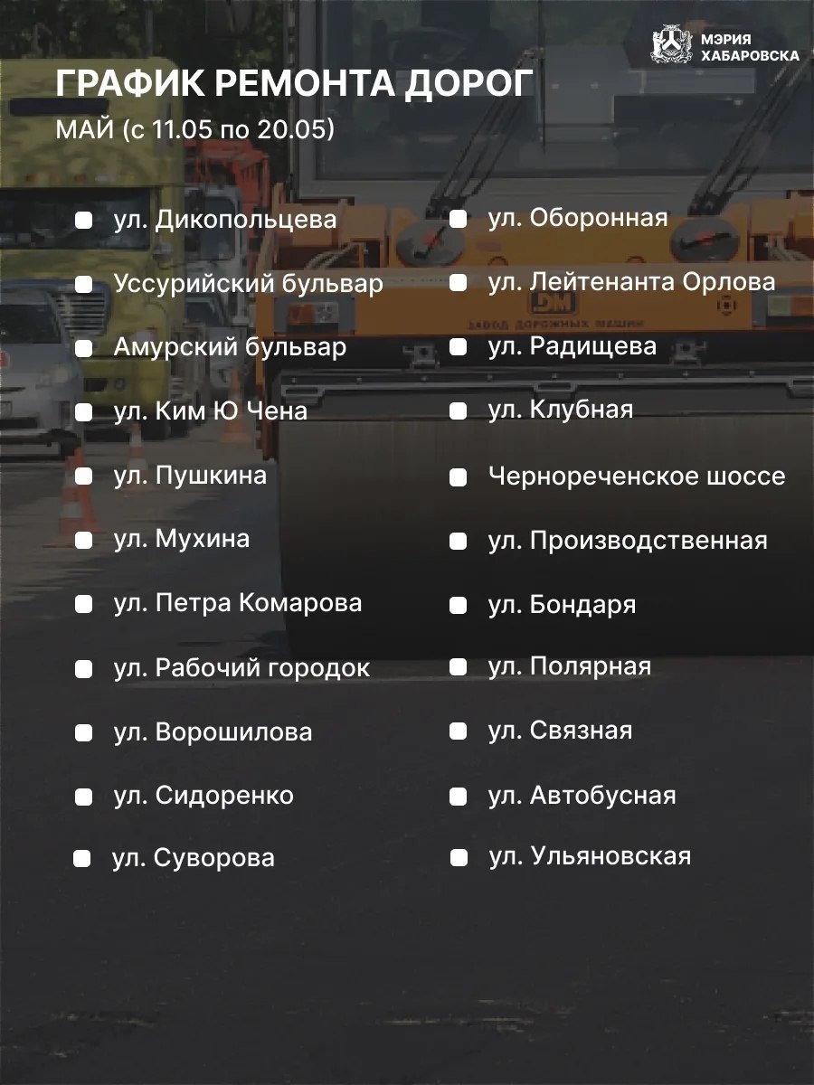 График работ уже составлен. Ознакомиться с ним можно в карточках или на сайте администрации.