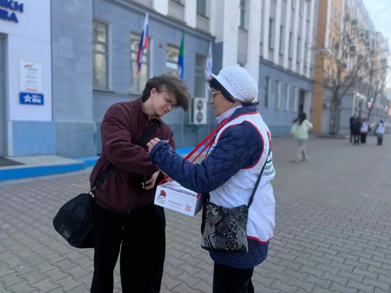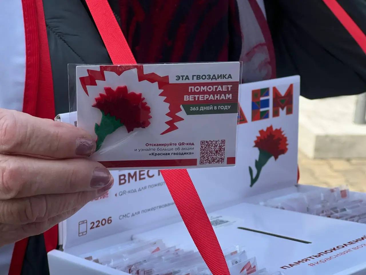 В этом году Всероссийская акция проводится уже в 11-й раз, и участие в ней — это самое малое, что мы можем сделать для наших героев. Волонтёры Победы снова вышли на улицы Хабаровска и Николаевска-на-Амуре с брендированными боксами, в которых — значки в виде красного цветка.