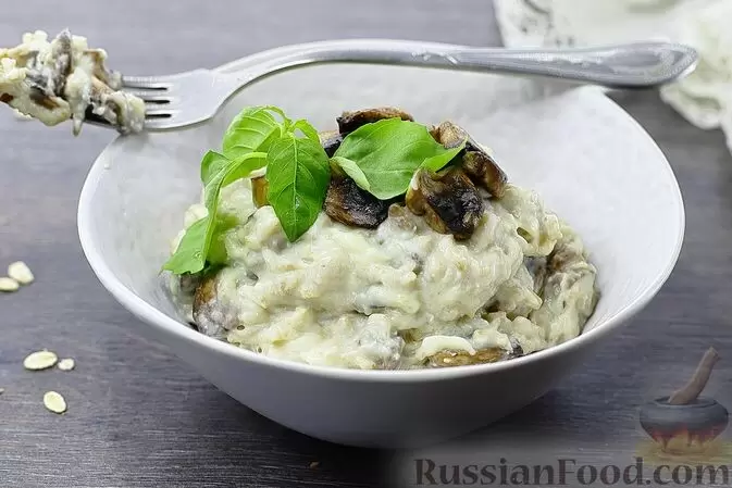 - Овсяная каша с грибами, яйцом и моцареллой: Это оригинальное сочетание делает каждую ложку поистине восхитительной — сытно, вкусно и нестандартно.