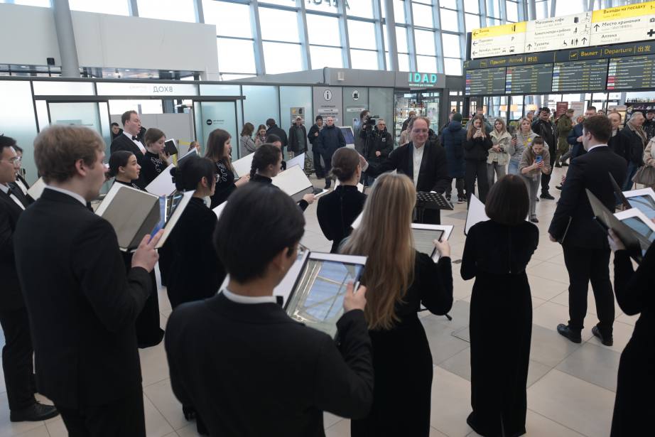 Камерный хор Московской государственной консерватории – участник Международного фестиваля, исполнил концертную программу при встрече воздушного судна, которое носит имя Сергея Королева.