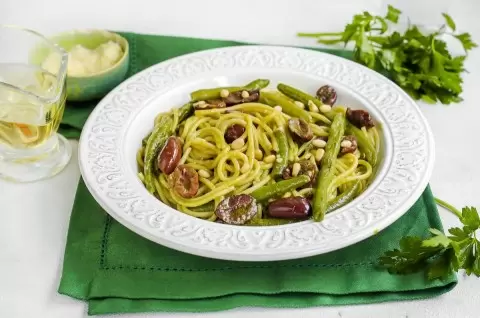 Итальянская кулинария с каждым годом продолжает вдохновлять гурманов по всему миру, и одной из её жемчужин стали зелёные спагетти, дополненные фасолью и пряным соусом Песто. Это блюдо не только радует глаз, но и обогащает меню своим великолепным вкусом и простотой приготовления.