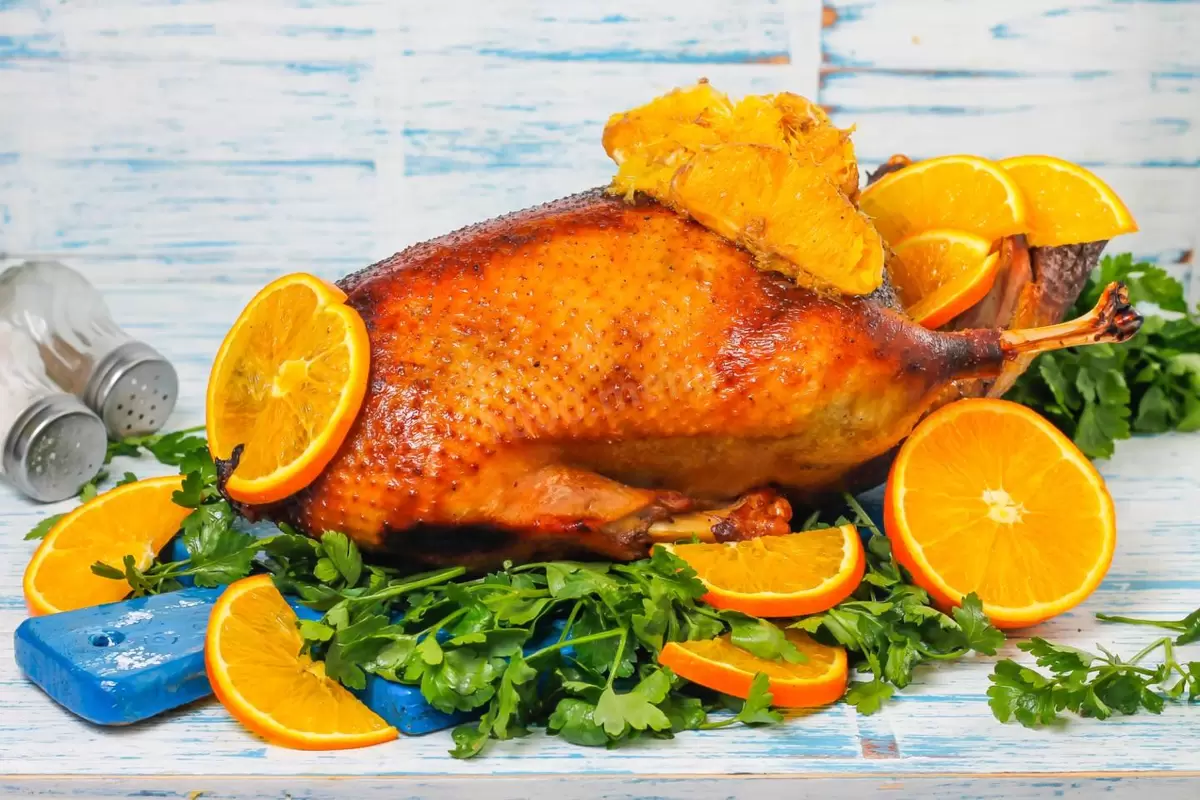 Гусь, запечённый с апельсинами, является одной из самых удачных интерпретаций этого классического блюда. Цитрусовые придают мясу невероятную нежность и убирают возможные привкусы дичи, а аромат, который наполняет дом, становится ярким и запоминающимся. Карамелизированная корочка с апельсинами делает этот гусь не просто простым блюдом, а настоящим центре внимания на праздничном столе.