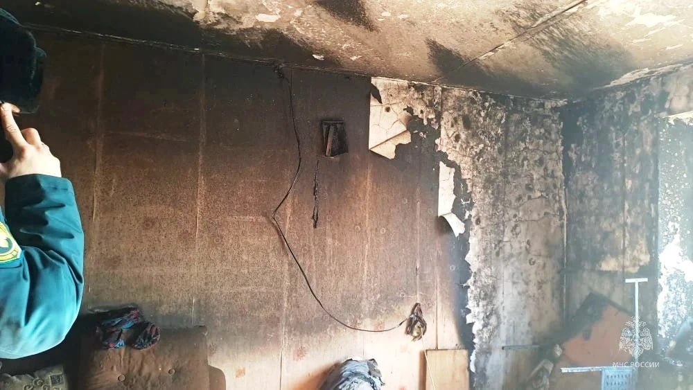 Пожар возник в квартире на втором этаже жилой девятиэтажки. Пожарные обнаружили внутри тело 60-летнего мужчины. 53-летняя женщина была госпитализирована с отравлением продуктами горения.