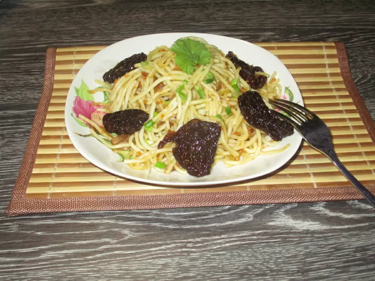 Когда спагетти будут готовы, промойте их в сите и дайте стечь. Затем добавьте к обжаренной смеси из лука и моркови.