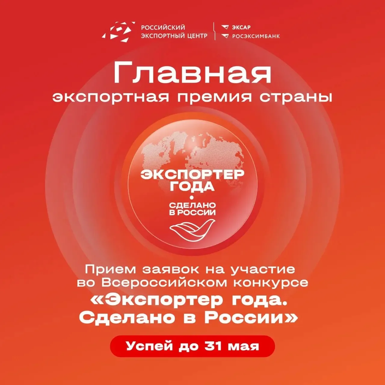 Продолжаем прием заявок на участие во Всероссийском конкурсе «Экспортер года. Сделано в России»!