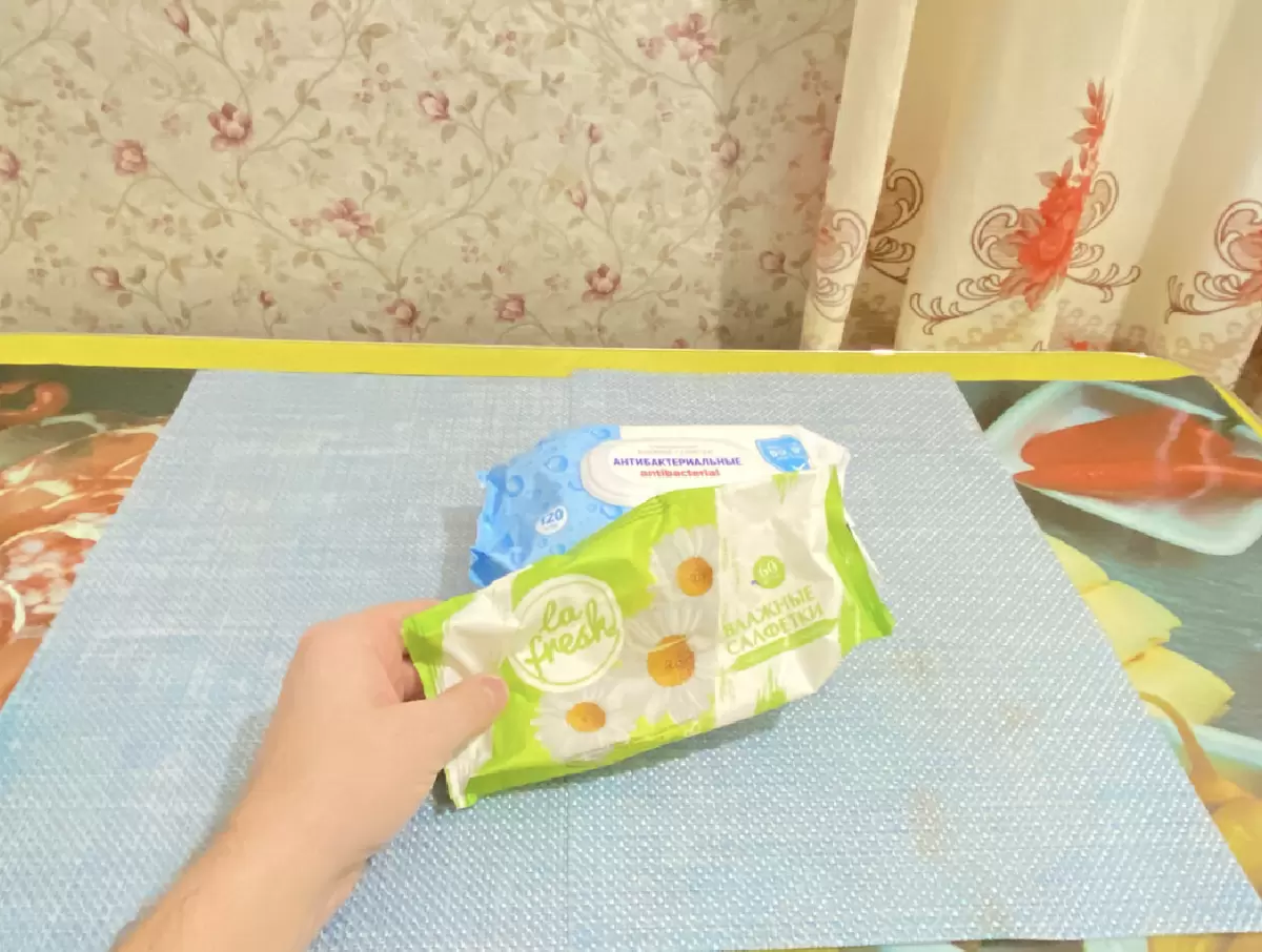 - Равномерно распределить жидкость по поверхности салфеток.