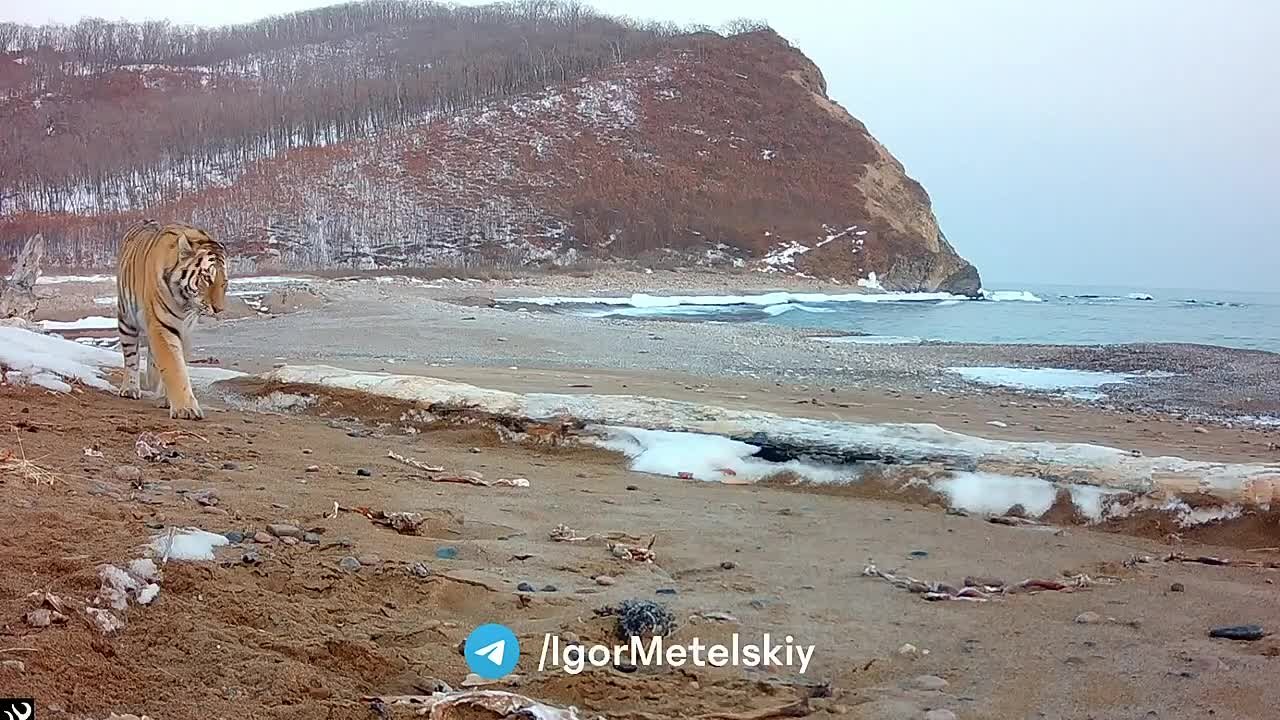Амурского тигра засняли на приморском пляже