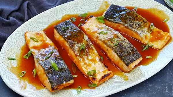 Подавая лосось, рекомендуется дополнить блюдо любимыми овощами или гарнирами, такими как бок-чой стир-фрай или грибы эноки с чесночным соусом. Это создание гастрономической симфонии станет настоящим украшением любого стола.
