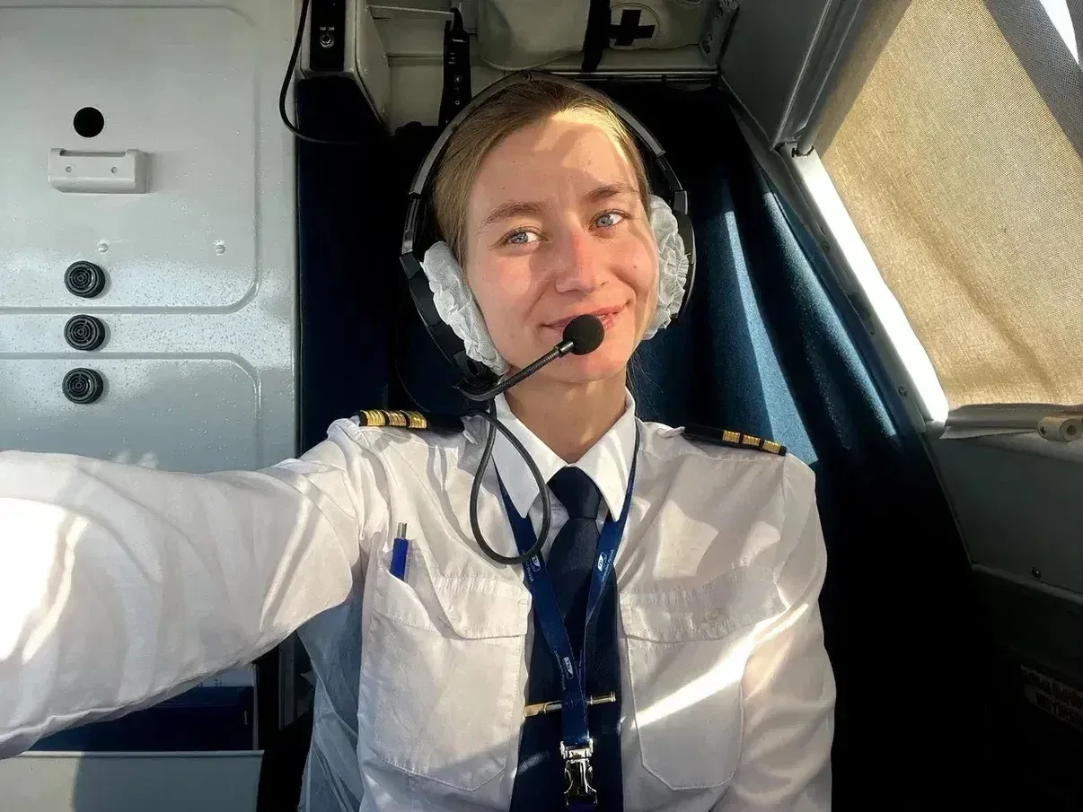 На одном из фото – Татьяна Шипилова, ей 27 лет. Она управляет воздушным судном L-410 на местных линиях с 2022 года. Руководство отмечает её как настоящего профессионала.
