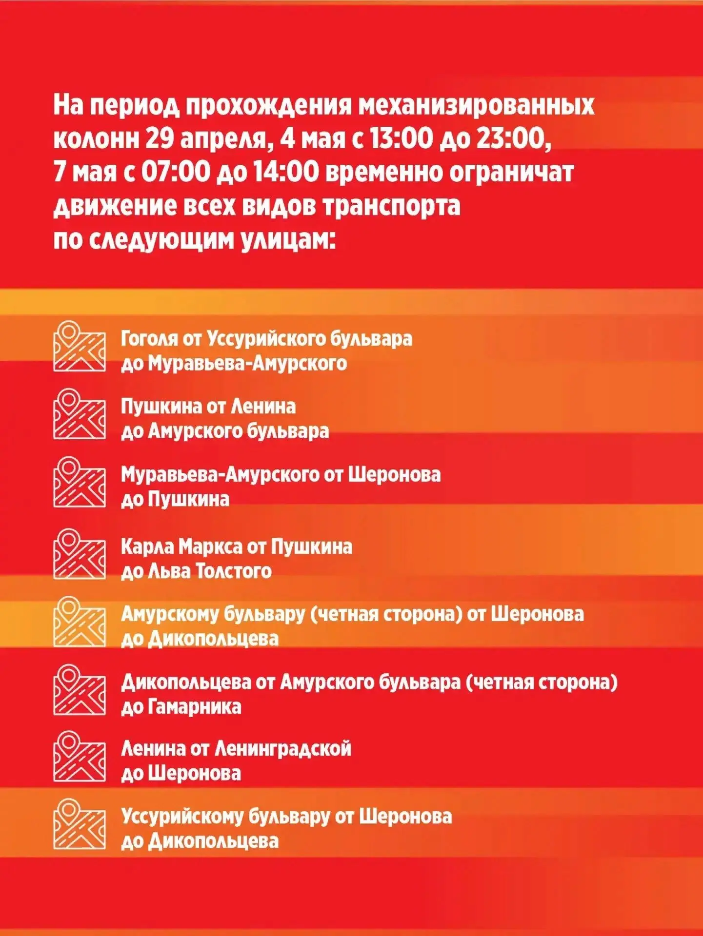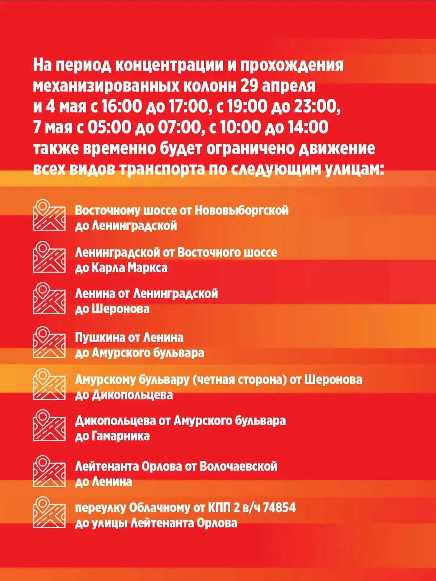 Напоминаем, что движение по определенным улицам города будет ограничено для движения и стоянки транспортных средств.Просим учитывать изменения при планировании поездок.Подробнее – в карточках.