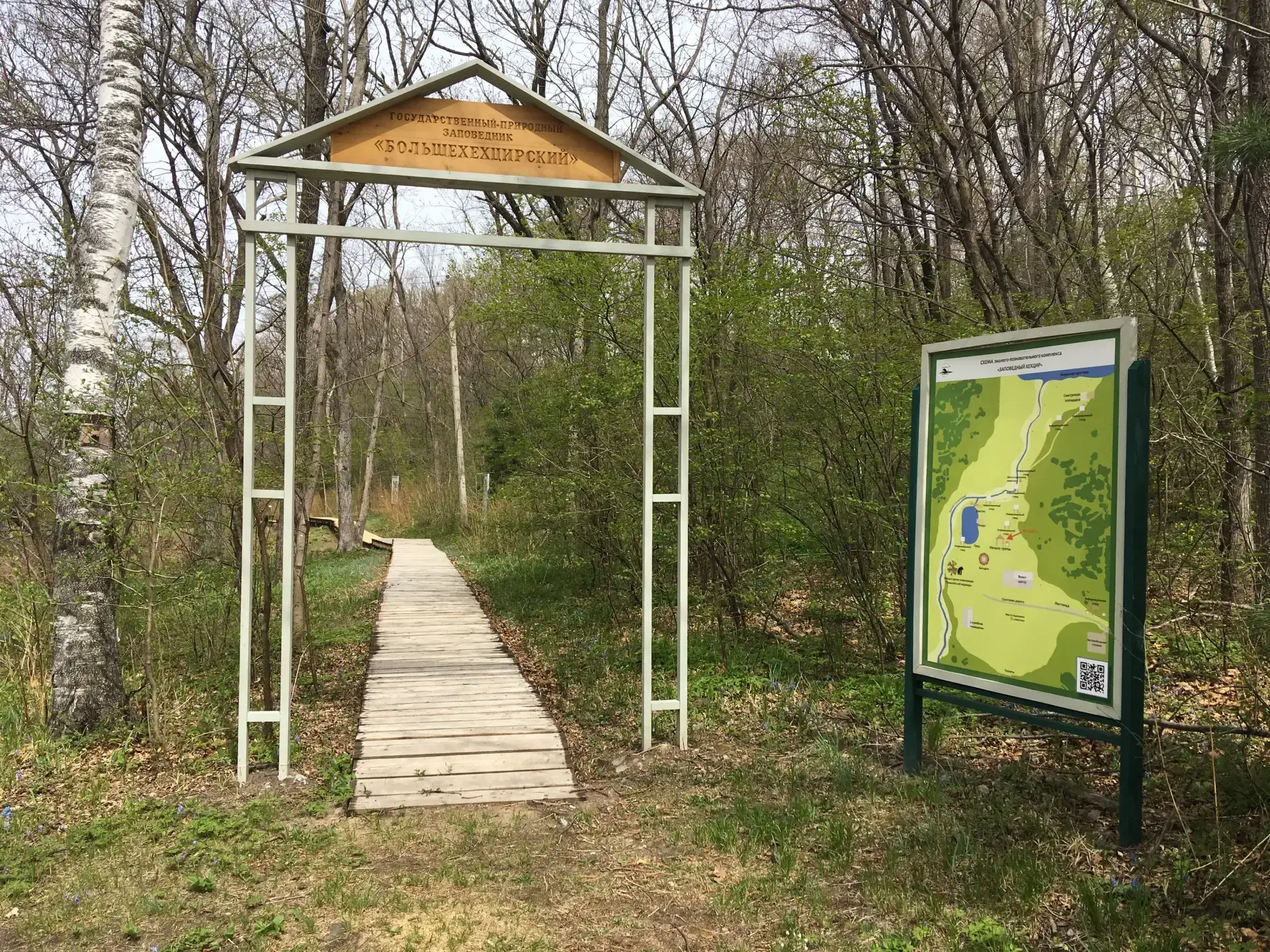 Одной из таких точек в Хабаровском крае является экологическая тропа «Заповедный Хехцир», протяженностью 2,55 км. Предполагаемое время прохождения –2,5 часа. Посещение доступно только в составе организованных групп и в сопровождении экскурсовода и государственного инспектора в ОООС.