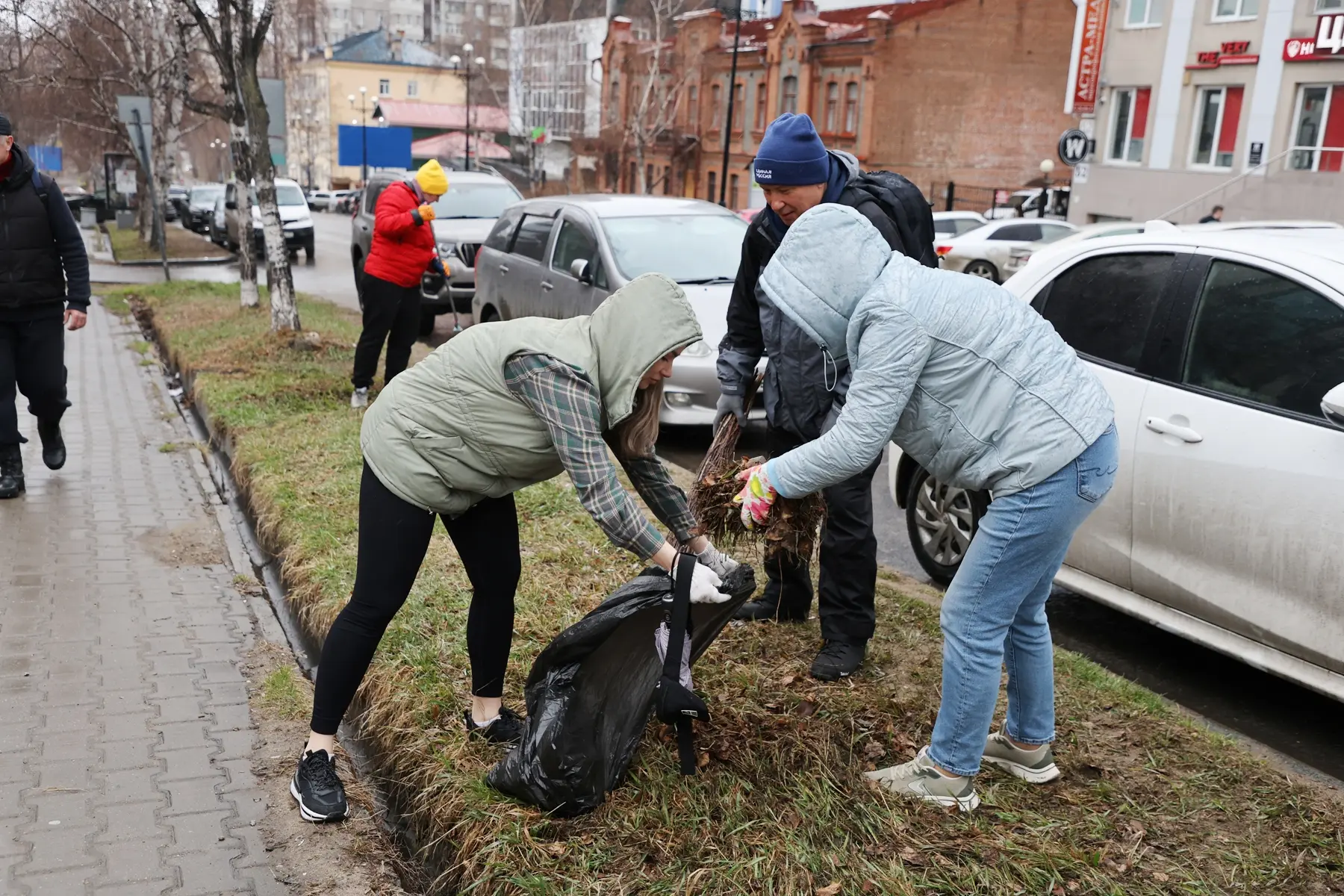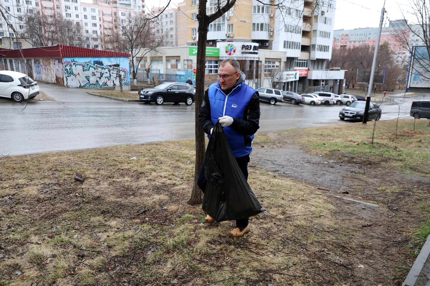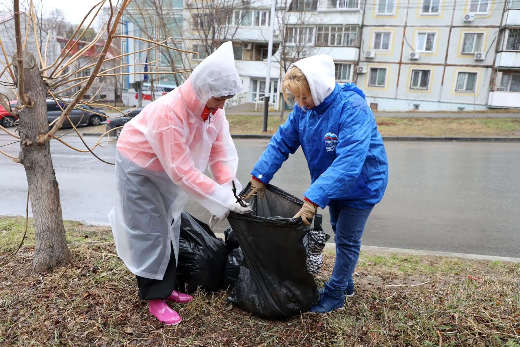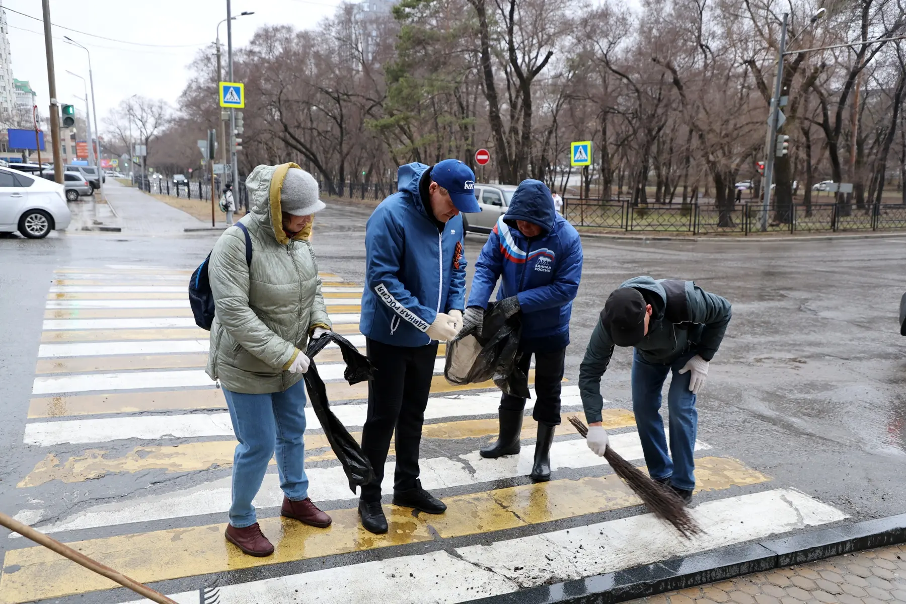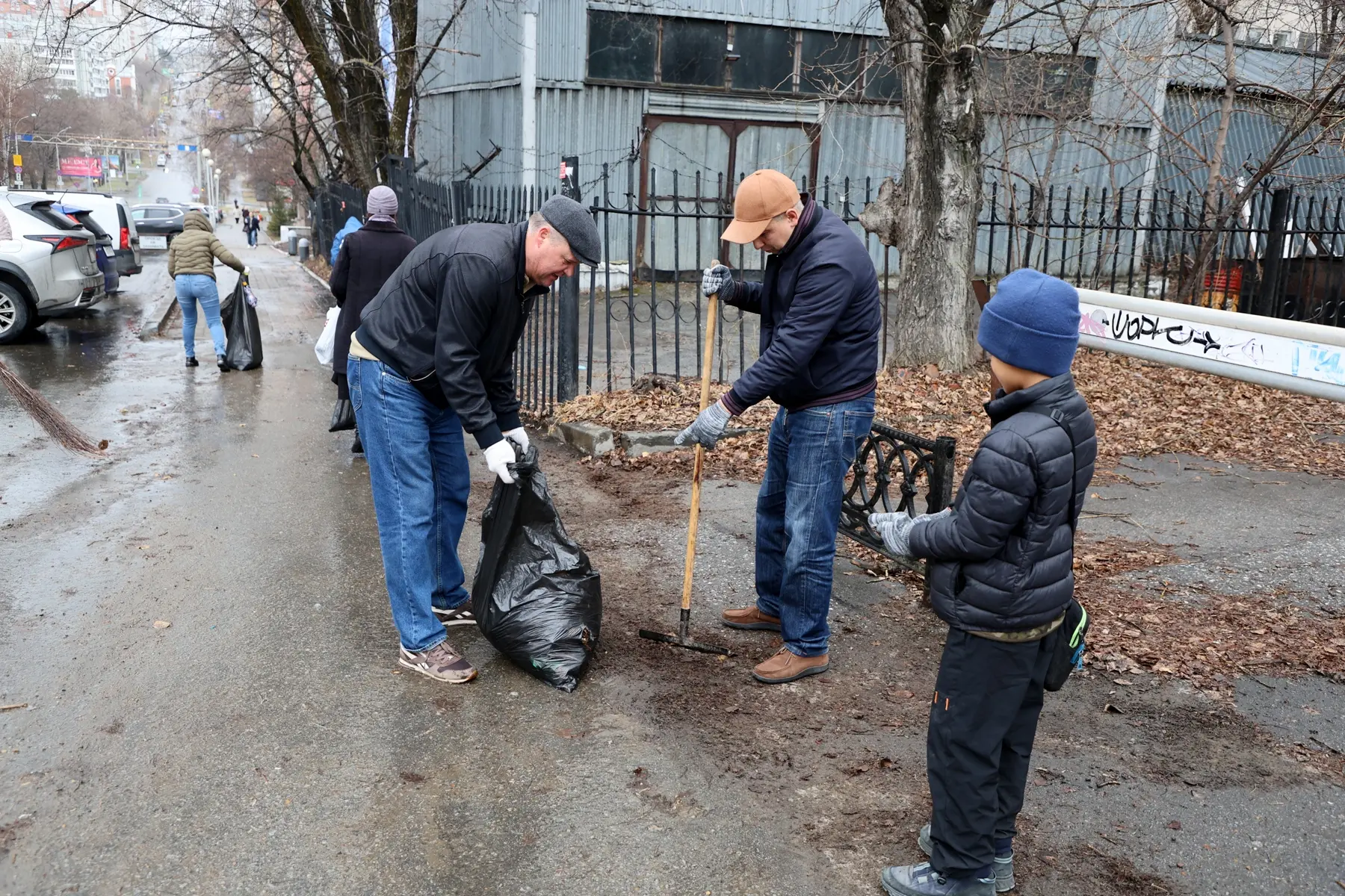 Вместе с сотрудниками аппарата и членами Молодежной общественной палаты парламентарии убрали улицу Дзержинского от Уссурийского бульвара до Ленина.