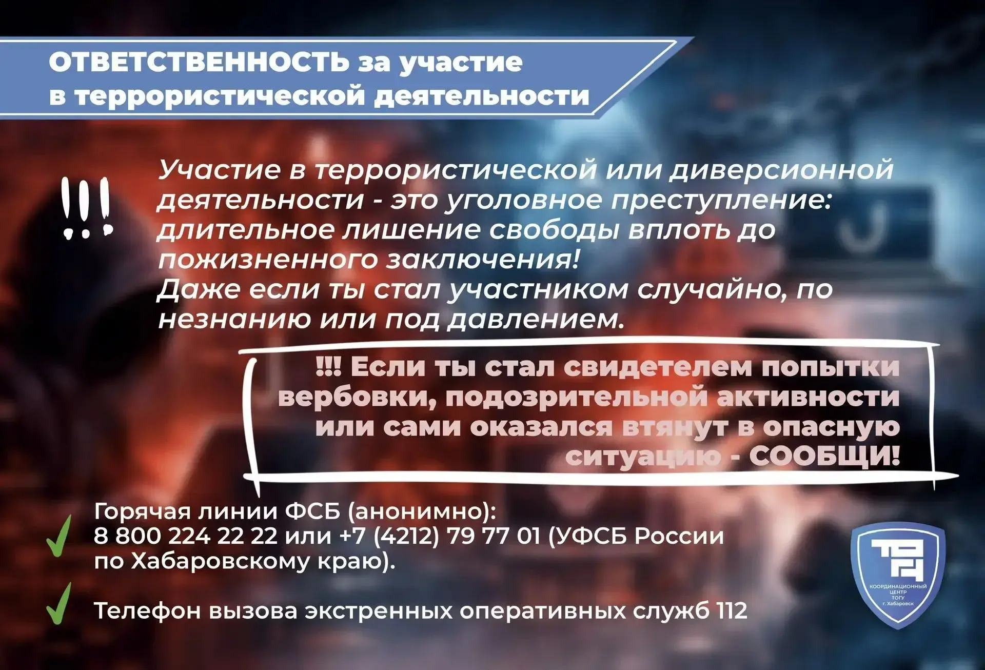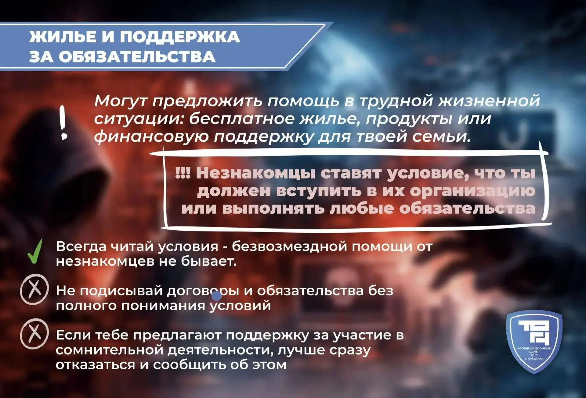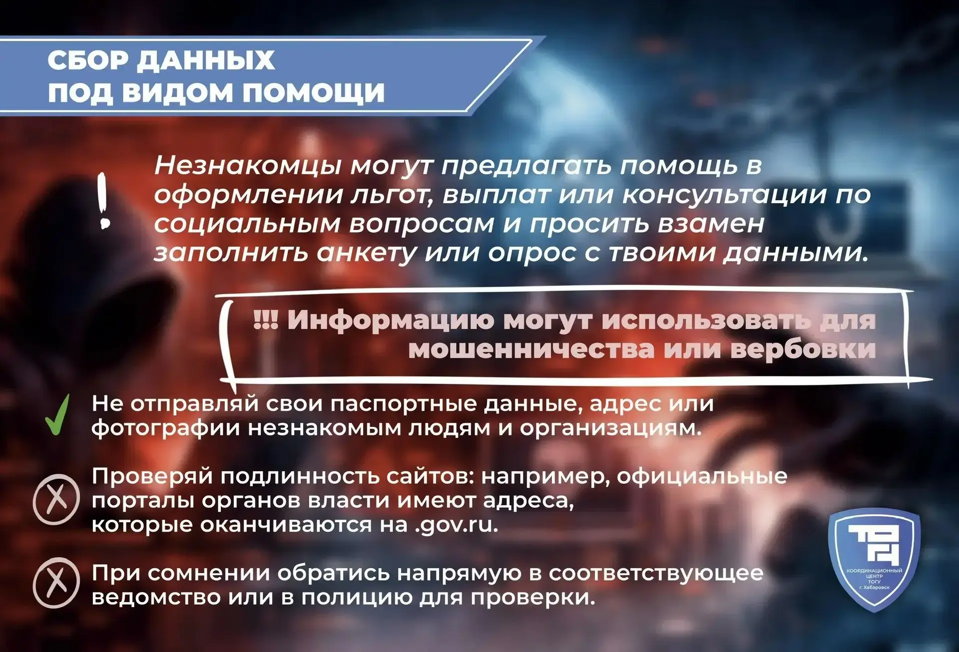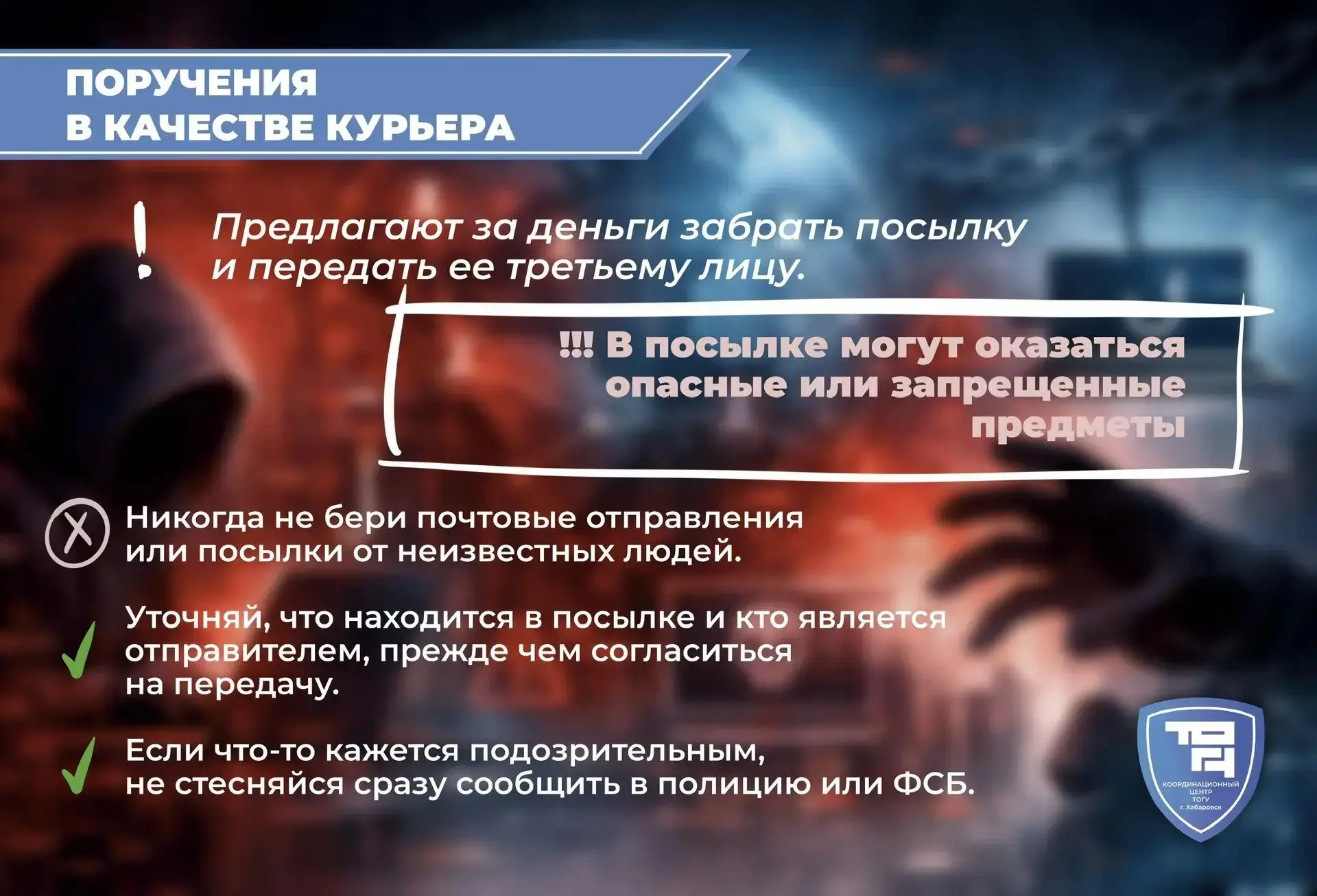 Координационный центр ТОГУ (https://clc.li/QPmKn) предупреждает: обещания лёгкого заработка, помощь «просто так» или сомнительные опросы могут быть не безобидными, а первым шагом в преступную схему. Вербовщики используют давление, незнание и даже заботу, чтобы втянуть в незаконные действия.