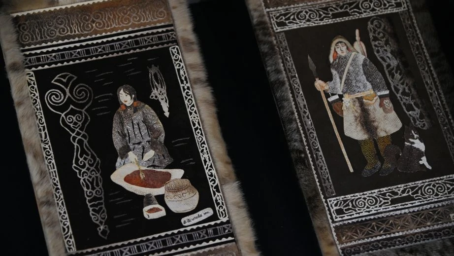 Пресс-служба краевого Минкульта сообщает, что работы Вероники Осиповой сочетают древнее ремесло обработки рыбьей кожи с современной художественной техникой. Художница создаёт картины из разноцветных полосок кожи с этнографическими деталями и национальным колоритом.